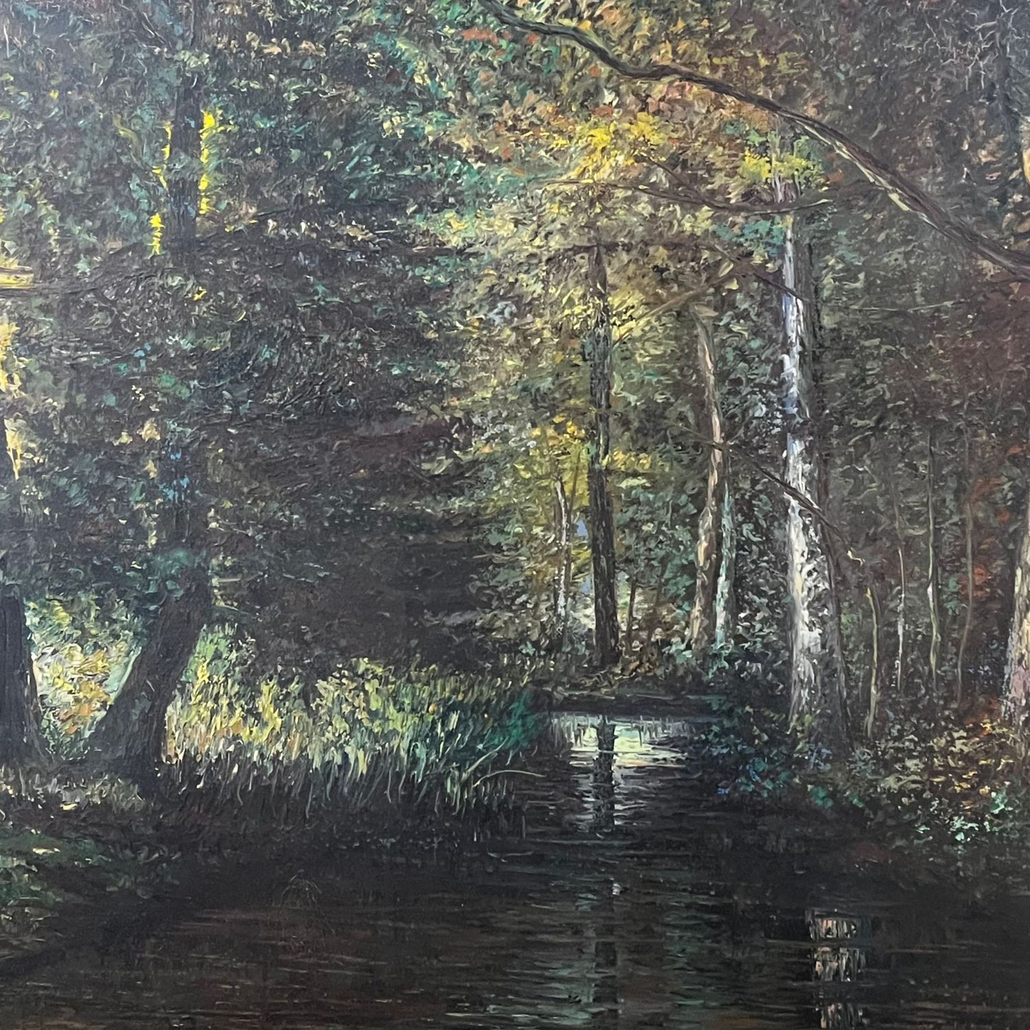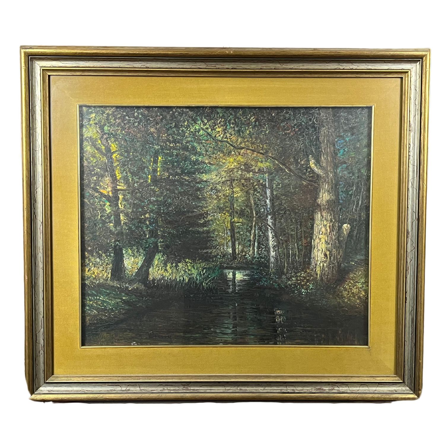 Dipinto olio su tela, periodo XX secolo, raffigurante Paesaggio boschivo.