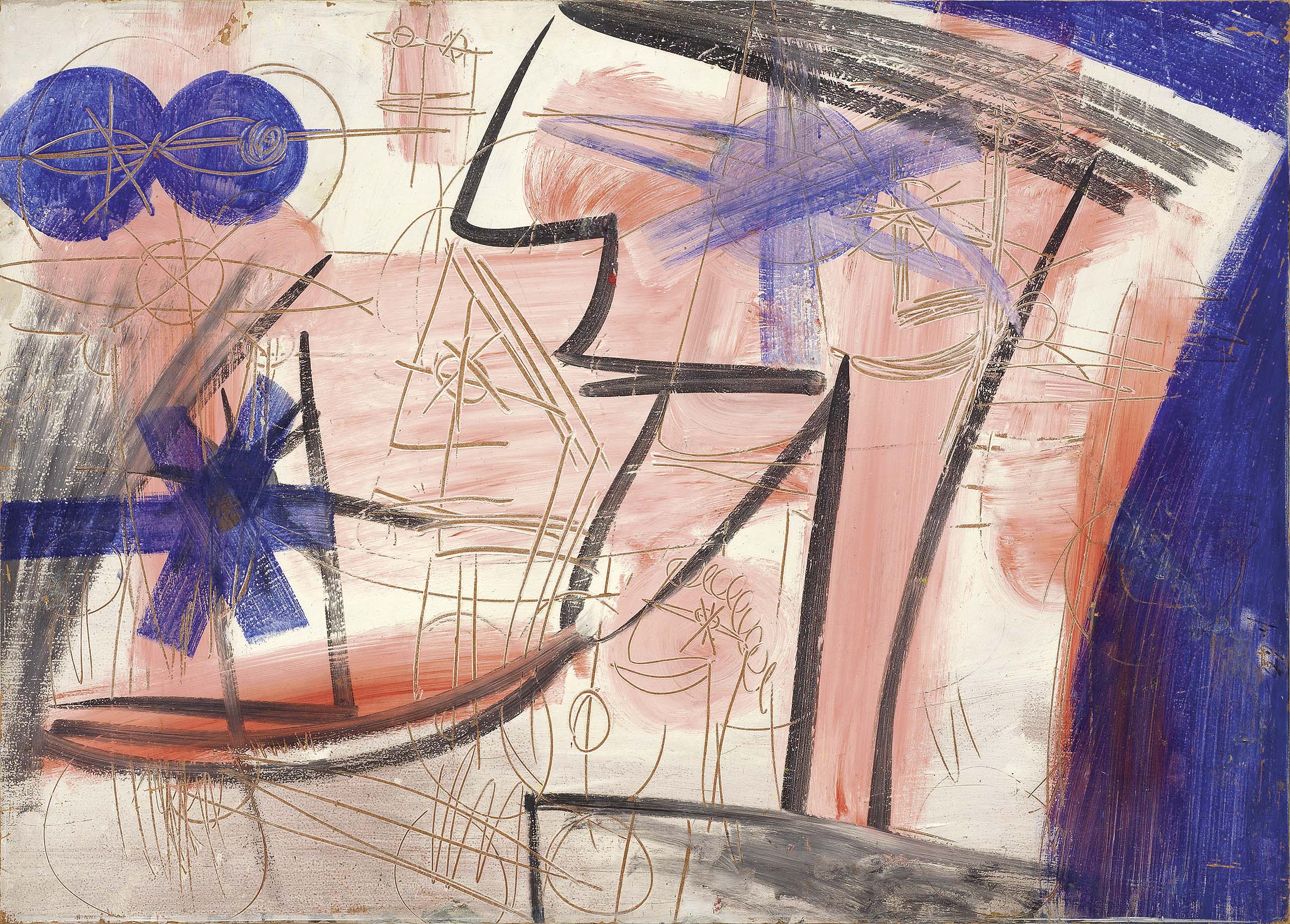 Tancredi Feltre (Bl) 1927 - Roma 1964 Senza titolo, 1954 Olio su faesite, cm. 82x115 Al verso: timbro Galleria Schettini: timbro Studio d'Arte G.R., Sacile; sul telaio: timbro Lagorio Arte Contemporanea, Brescia: timbro Galleria Schettini. Esposizioni: Tancredi, Milano, Brerarte, 3 - 10 novembre 1983, cat. n. 50, fig. n. 50, illustrato. Bibliografia: Marisa Dalai Emiliani, Tancredi, i dipinti e gli scritti, 2 volumi, con la collaborazione di Silvia Mascheroni e Cecilia Scatturin, Umberto Allemandi, Torino, 1997, n. 529; Carlo Cardazzo. Una nuova visione dell'arte, catalogo della mostra, Venezia, Collezione Peggy Guggenheim, 1 novembre 2008 - 9 febbraio 2009, Mondadori Electa, Milano, 2008, p. 289.