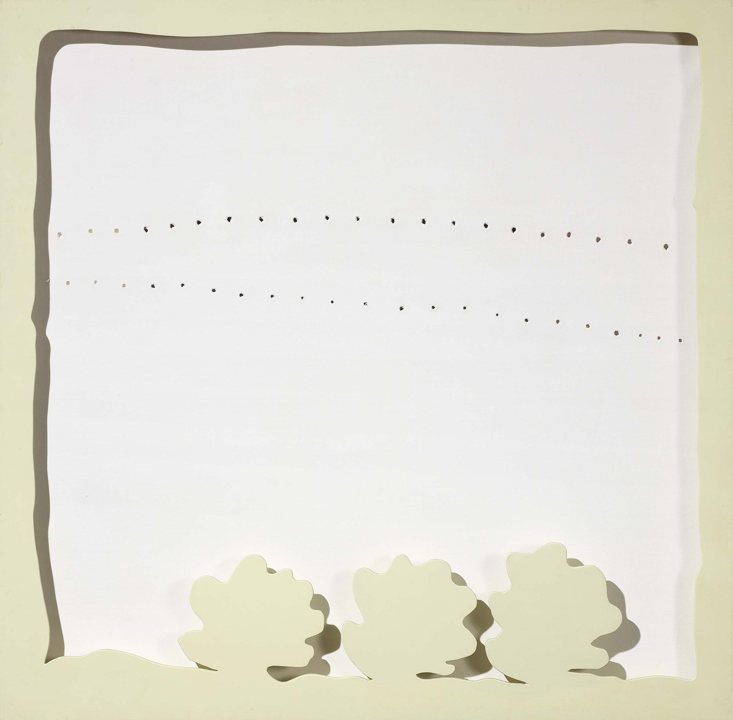 Lucio Fontana Rosario Santa Fè 1899 - Varese 1968 Concetto spaziale, Teatrino, 1965 - 66 Idropittura su tela, bianco, e legno laccato, bianco, cm. 110x110x6,5 Firma e titolo al verso sulla tela: L. Fontana / "Concetto spaziale"; sul telaio: etichetta Galerie Bonnier, Genève, con n. 73017. Storia: Gallery Art Point, Tokyo; Galerie Pierre, Stoccolma; Collezione privata, Milano; Collezione privata Esposizioni: Lucio Fontana, Spatial conception, Tokyo, Tama Art University Museum, 1 giugno - 4 settembre 1990, cat. p. 55, n. 50; Lucio Fontana, la penetrazione dello spazio, mostra itinerante in Giappone, aprile - novembre 1992, cat. p. 119, n. 88. Bibliografia: Enrico Crispolti, Lucio Fontana. Catalogue raisonné des peintures, sculptures et environnement spatiaux, vol. II, La Connaissance, Bruxelles, 1974, pp. 174 - 175, n. 65-66 TE 11; Enrico Crispolti, Fontana. Catalogo generale volume secondo, Electa, Milano, 1986, p. 615, n. 65-66 TE 11; Enrico Crispolti, Lucio Fontana. Catalogo ragionato di sculture, dipinti, ambientazioni, tomo II, con la collaborazione di Nini Ardemagni Laurini, Valeria Ernesti, Skira editore, Milano 2006, p. 802, n. 65-66 TE 11. Attestato di libera circolazione.