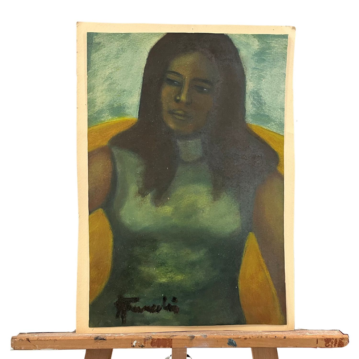 Dipinto olio su Cartoncino raffigurante ritartto di giovane donna.