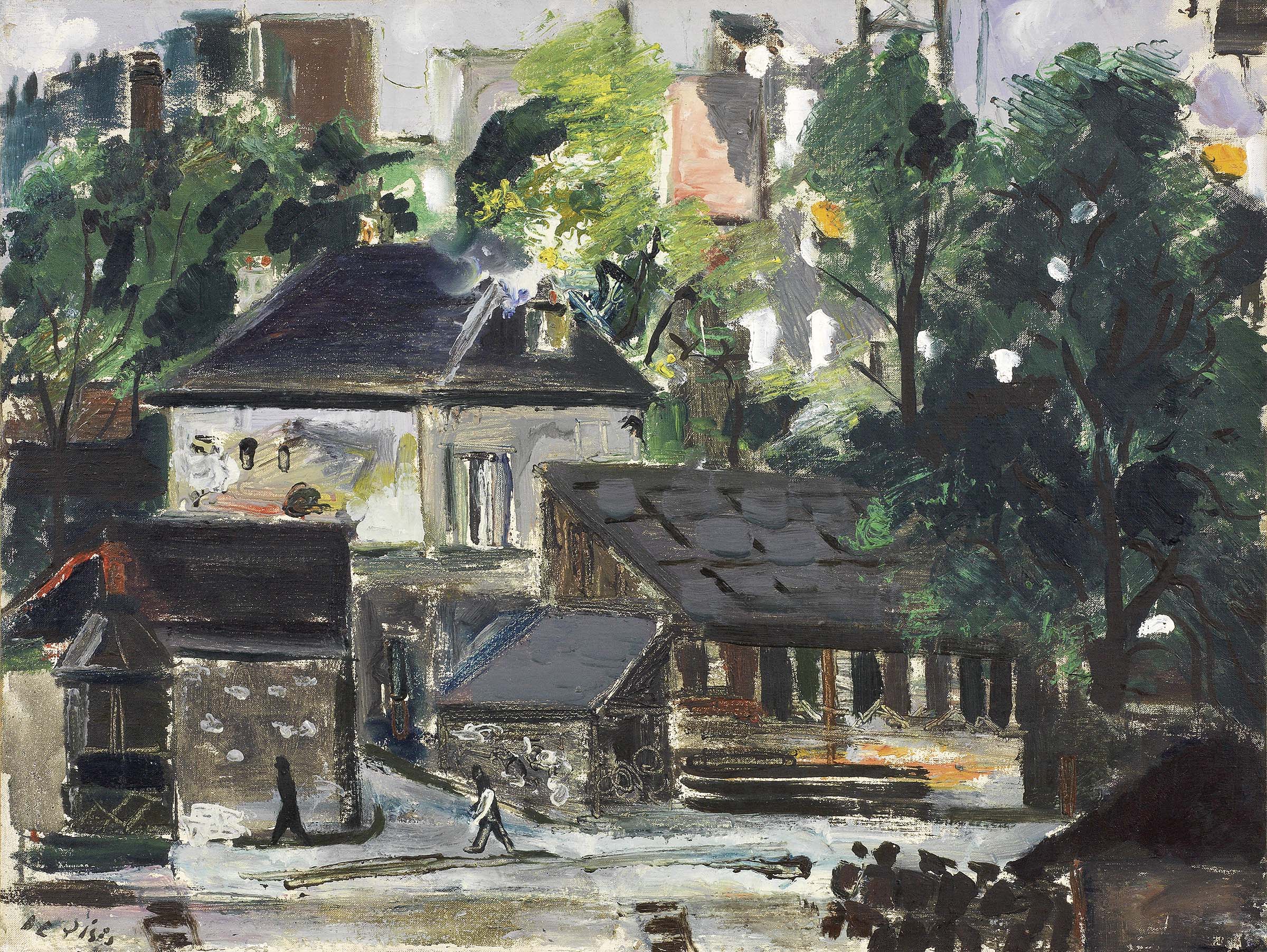 Filippo de Pisis Ferrara 1896 - Milano 1956 Sobborgo parigino, (1929) Olio su tela, cm. 46x61 Firma in basso a sinistra: de Pisis. Al verso sul telaio: etichetta Comune di Verona / Mostra di / Filippo de Pisis / 6 luglio - 21 settembre 1969 / Palazzo della Gran Guardia, con n. 110. Storia: Collezione Bona de Pisis; Collezione privata Bibliografia: Guido Ballo, De Pisis, Edizioni Ilte, Torino, 1968, p. 176, n. 229; Giuliano Briganti, De Pisis. Catalogo generale, tomo primo, opere 1908-1938, con la collaborazione di D. De Angelis, Electa, Milano, 1991, p. 208, n. 1929 16.