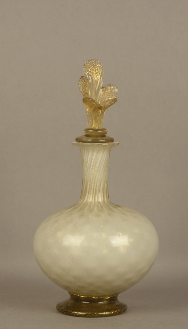 Vasetto con tappo in vetro lavorato a caldo. Murano. Anni '30-'40. Mis. Alt....