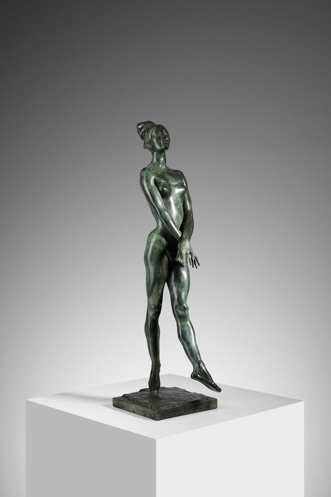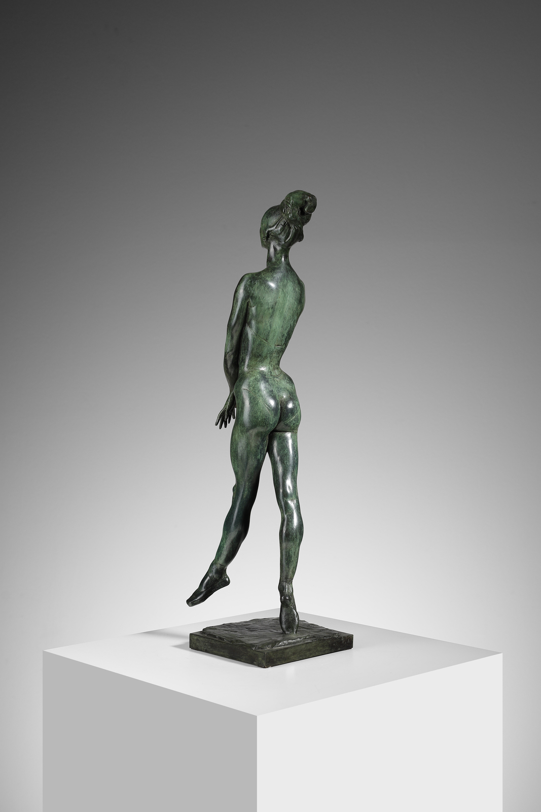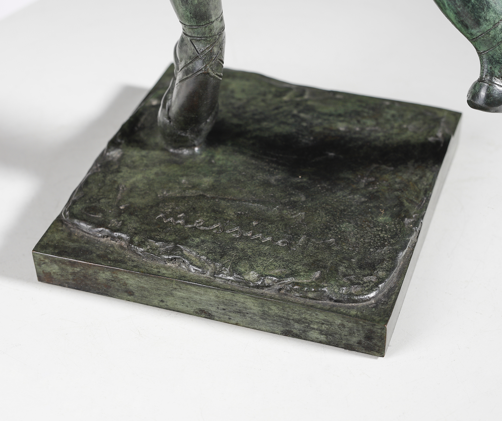 MESSINA FRANCESCO (1900 - 1995) DANZATRICE, 1970. Multiplo in bronzo a patina verde. Cm 15,00 x 56,00 x 15,00. firma incisa alla base, e.s. p.a.