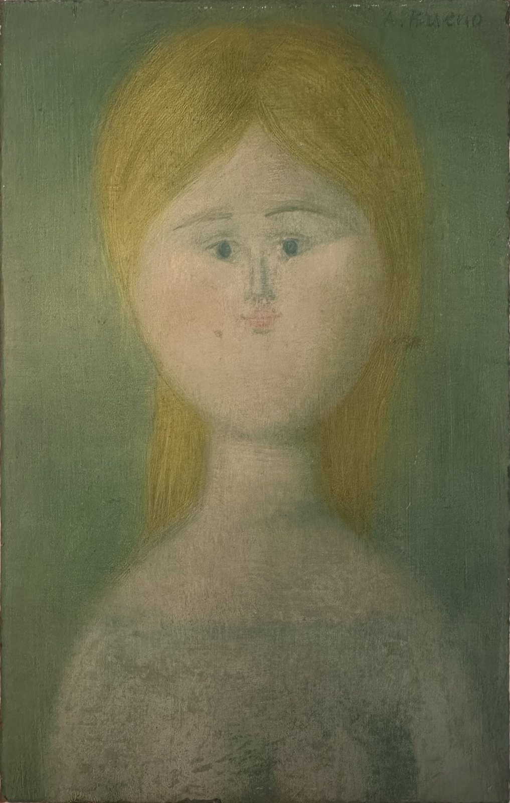 BUENO ANTONIO (1918 - 1985) VOLTO DI FANCIULLA, (FINE ANNI '60). olio su faesite. Cm 19,30 x 29,80. firma