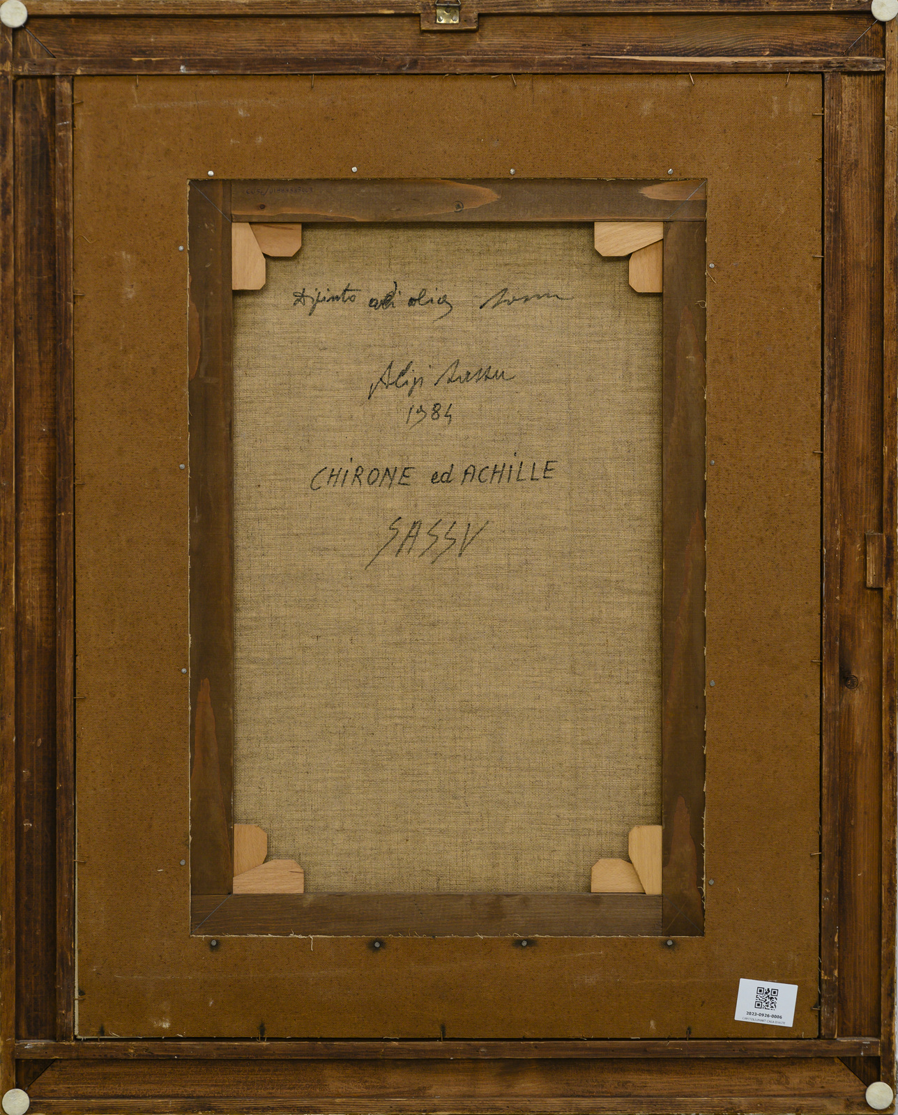 SASSU ALIGI (1912 - 2000) CHIRONE E ACHILLE, 1984. olio su tela. Cm 47,00 x 68,00. firma.