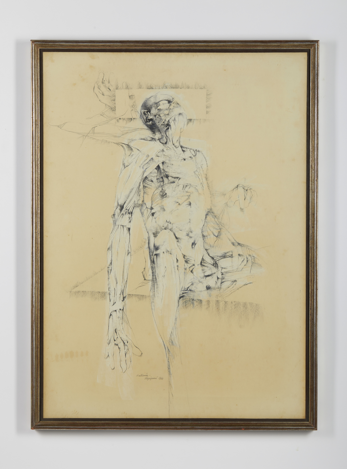 VESPIGNANI RENZO (1924 - 2001) ANATOMIA, 1964. carboncino e pastello su carta appllicata su tela. Cm 69,00 x 95,00. firma, titolo e data