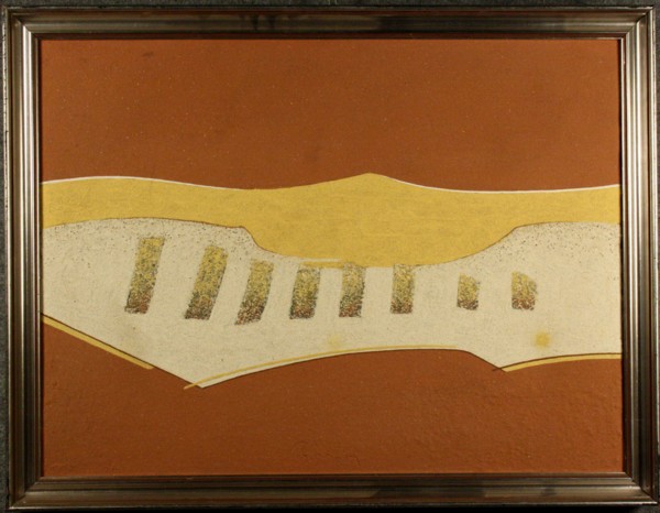 RIGHETTI RENATO - Nato a Roma nel 1916. Morto a Napoli nel 1982. Tecnica mista su tela intitolata ''ERG EL KOUDIA (TUNISIA)''. Firmata in basso al centro. In cornice. Mis. Lung. cm. 80 Alt. cm. 60 ca.