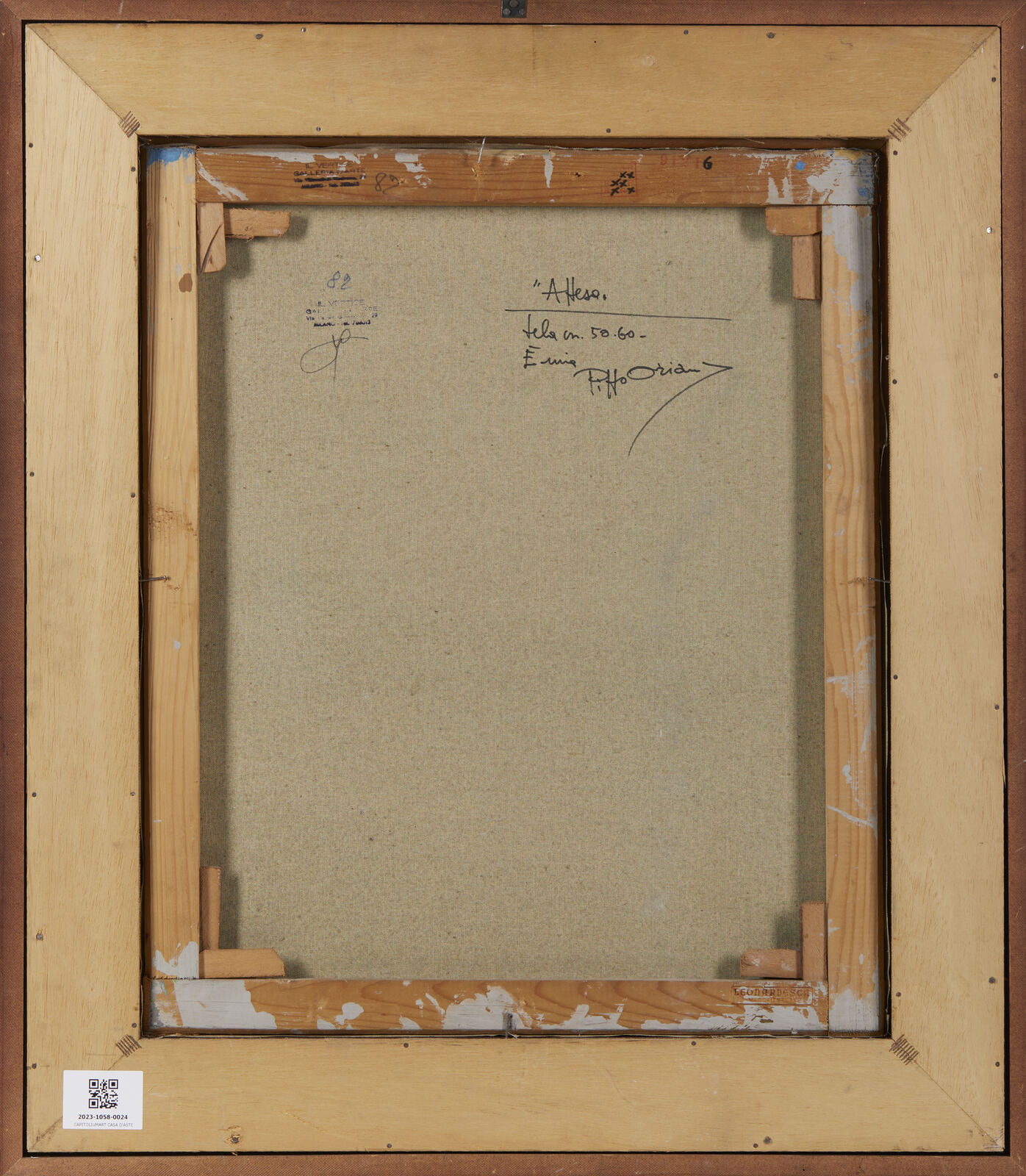 L'opera è accompaganta da attestato di archiviazione della Pippo Oriani Foundation, che la data 1965. Cornice presente