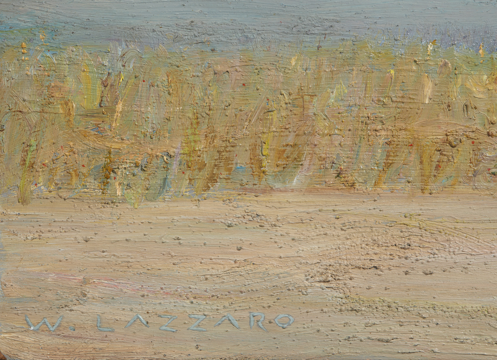 LAZZARO WALTER (1914 - 1989) TENDA BIANCA, 1976. olio su fesite. Cm 70,00 x 25,00. firma e data