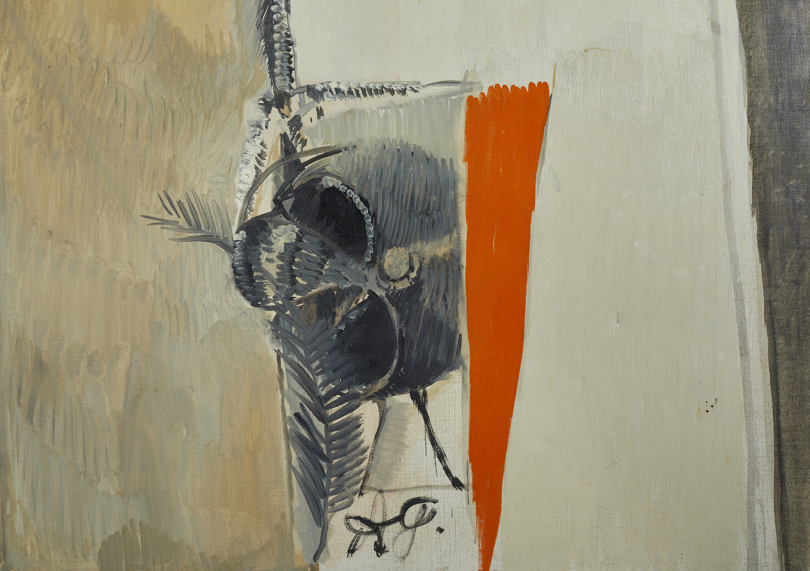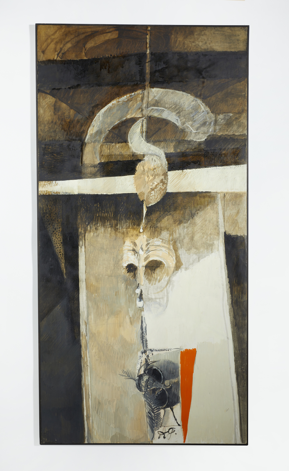 GIANQUINTO ALBERTO (1929 - 2003) LA SPUGNA DELL'ACETO SULLA PALA DELL'ELMO E DEL TORSO, 1968. olio su tela. Cm 100,00 x 200,00. sul retro firma, data e dedica ad personam