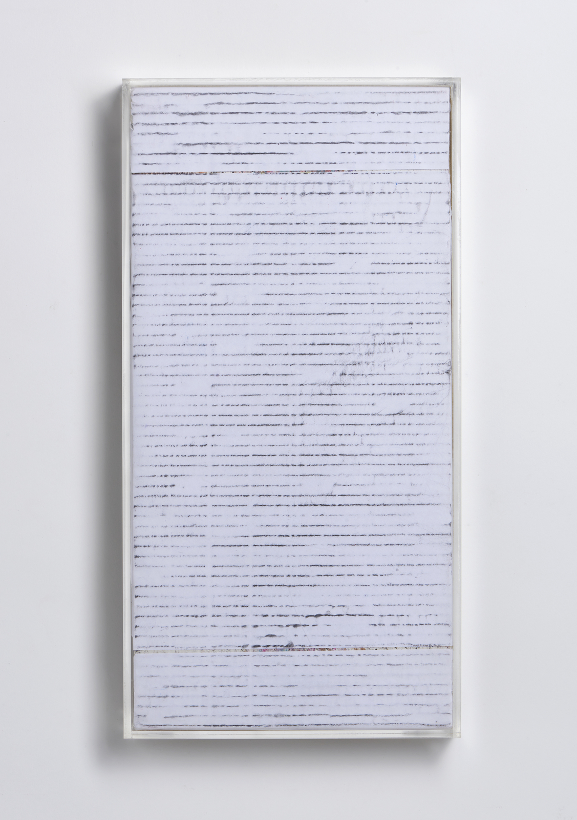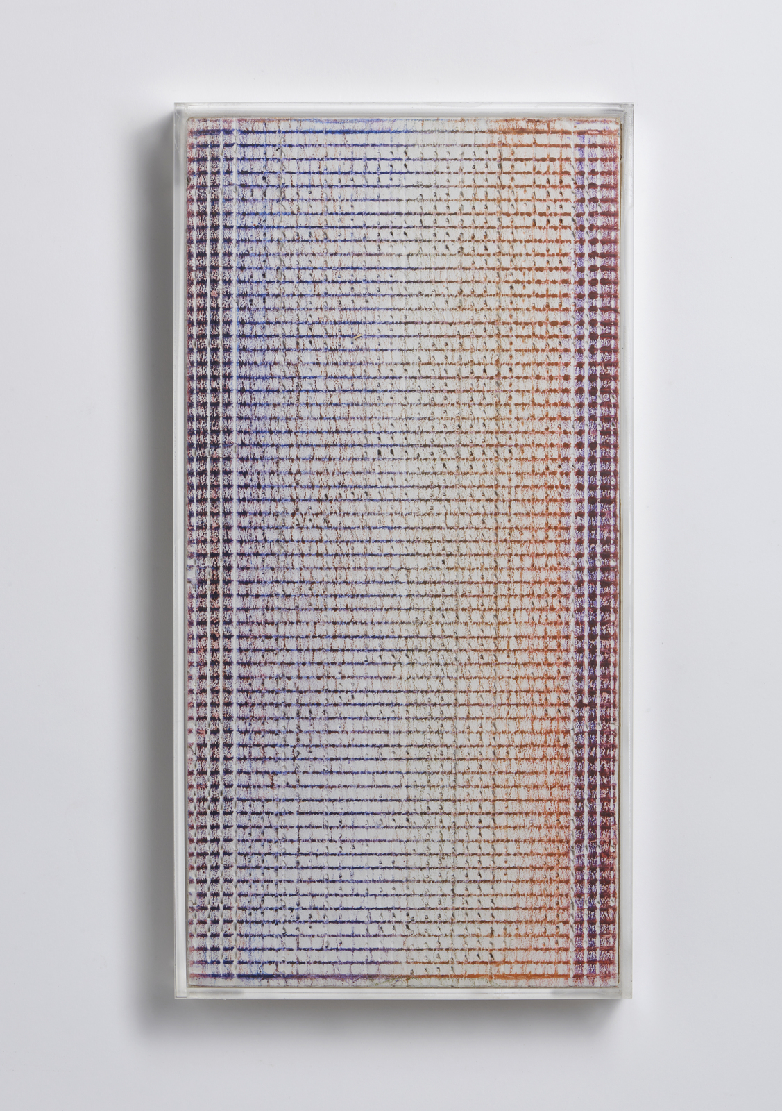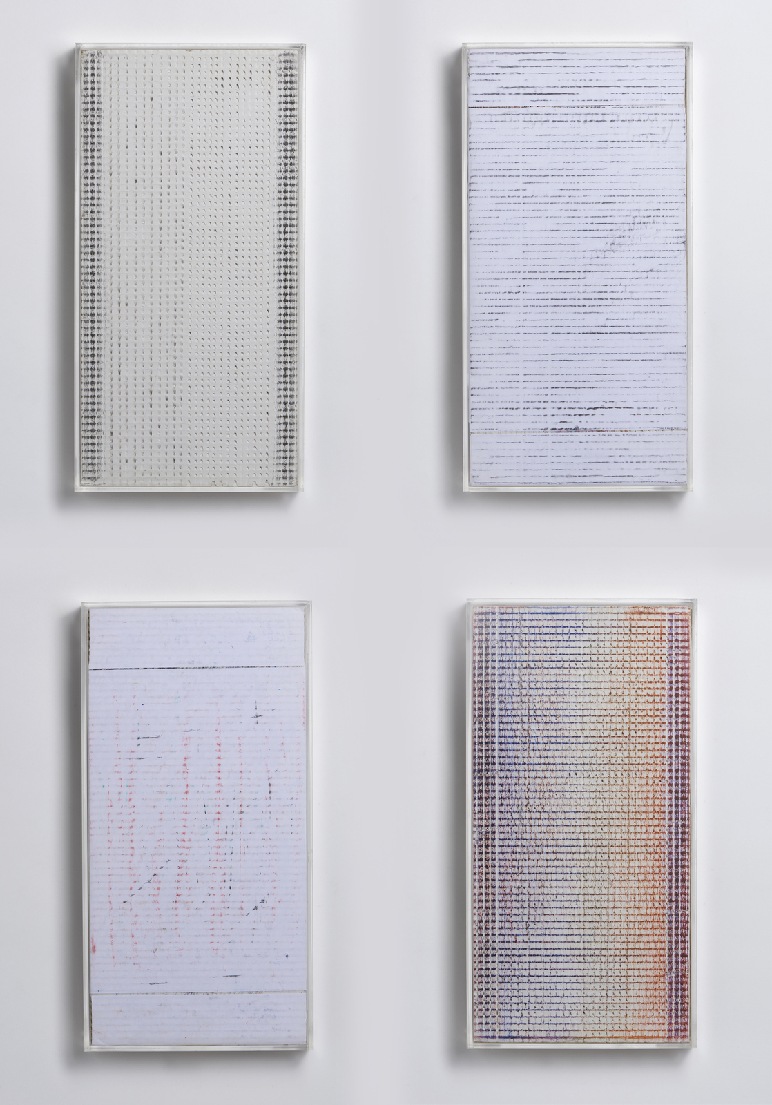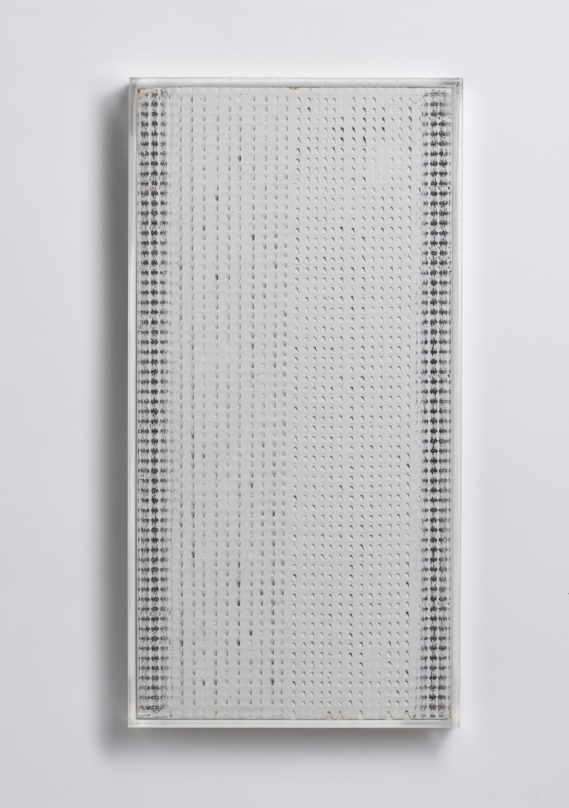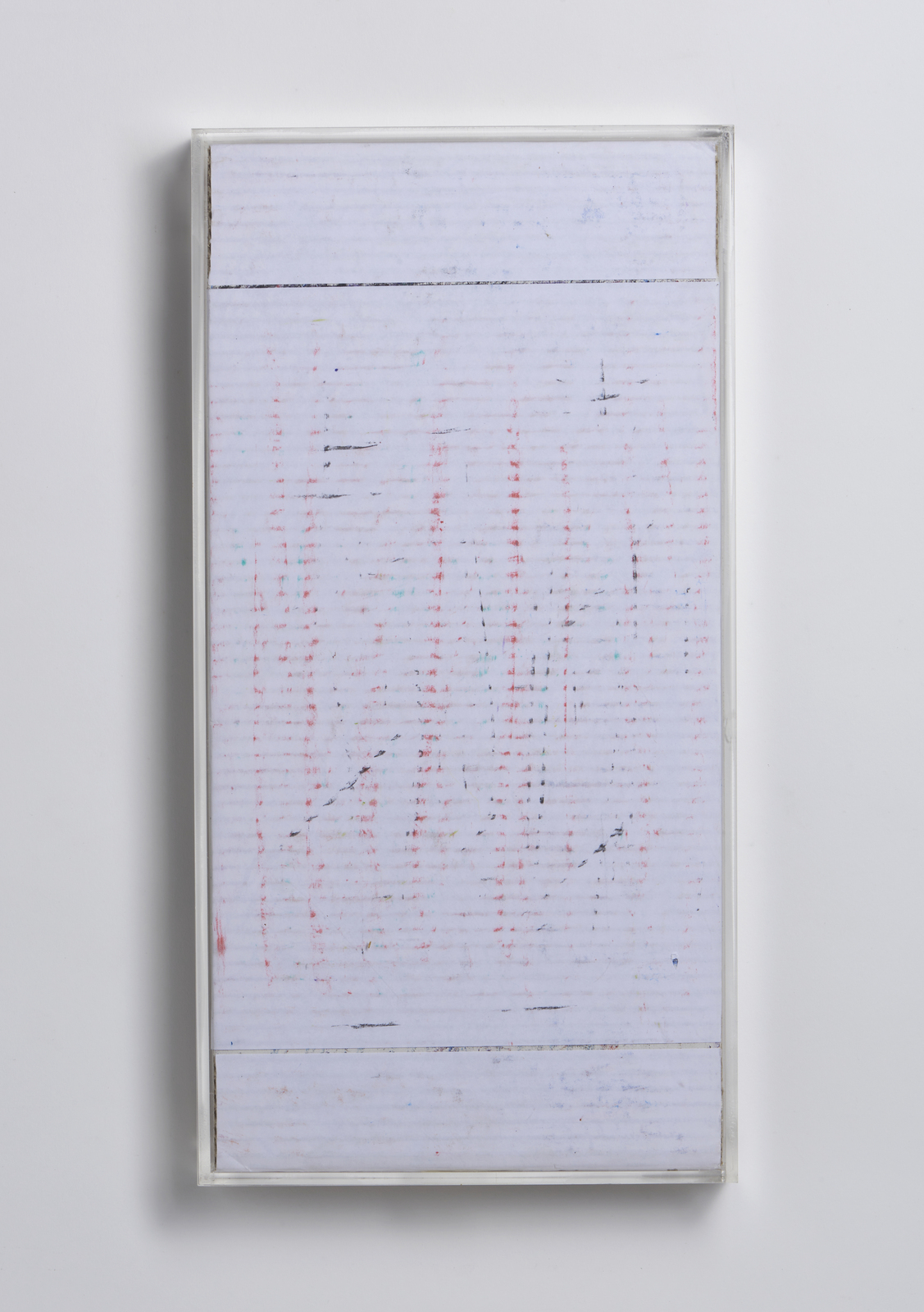 MASI PAOLO (n. 1933) ORDINE E CAOS CASUALITA' CONTROLLATA (POLITTICO), 2015. smalto e acrilico su cartone entro teca di plexiglass. Cm 39,00 x 80,00. sul retro: firma e titolo