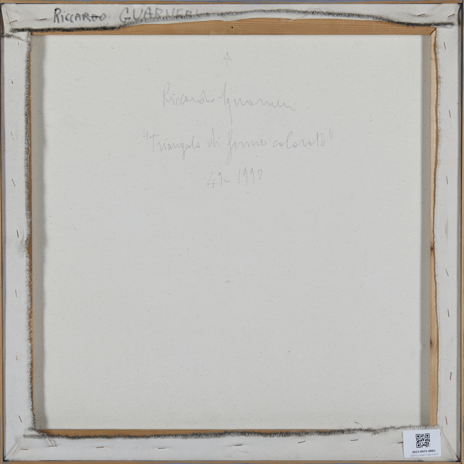 GUARNERI RICCARDO (n. 1933) TRIANGOLO DI FUMO COLORATO, 1990. olio su tela. Cm 65,00 x 65,00. firma
