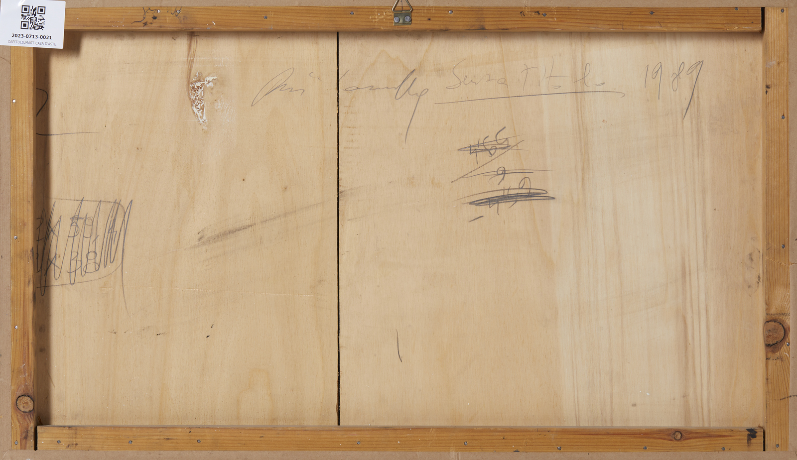 PIZZICANNELLA PIERO (n. 1955) SENZA TITOLO, 1989. olio su tavola. Cm 65,50 x 38,50. sul retro: titolo, firma e data.