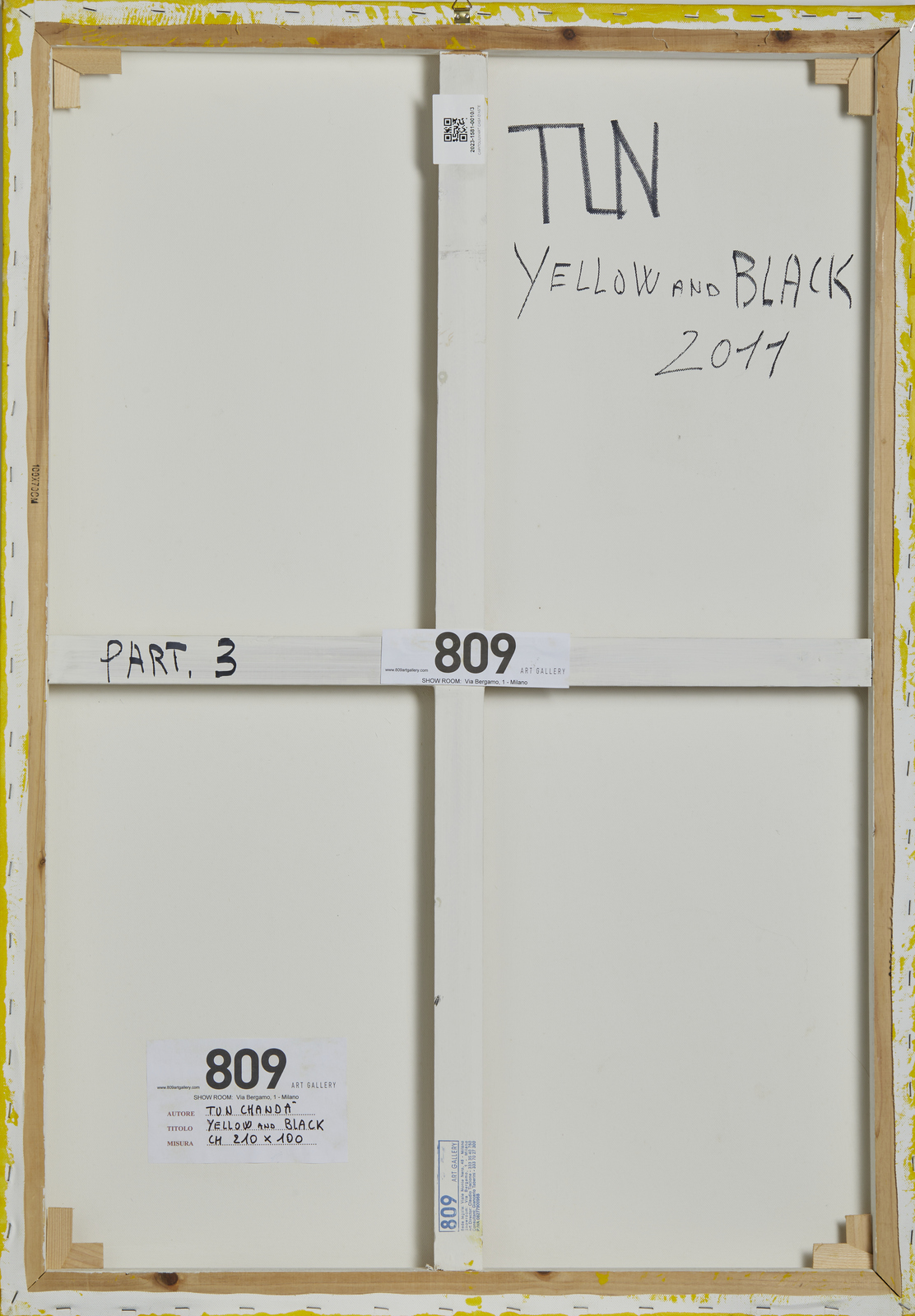 TUN CHANDA (n. 1980) YELLOW AND BLACK, 2011. acrilico su tela. Cm 210,00 x 100,00. sul retro: firma, titolo e data; timbro Show Room 809 Art Gallery, Milano