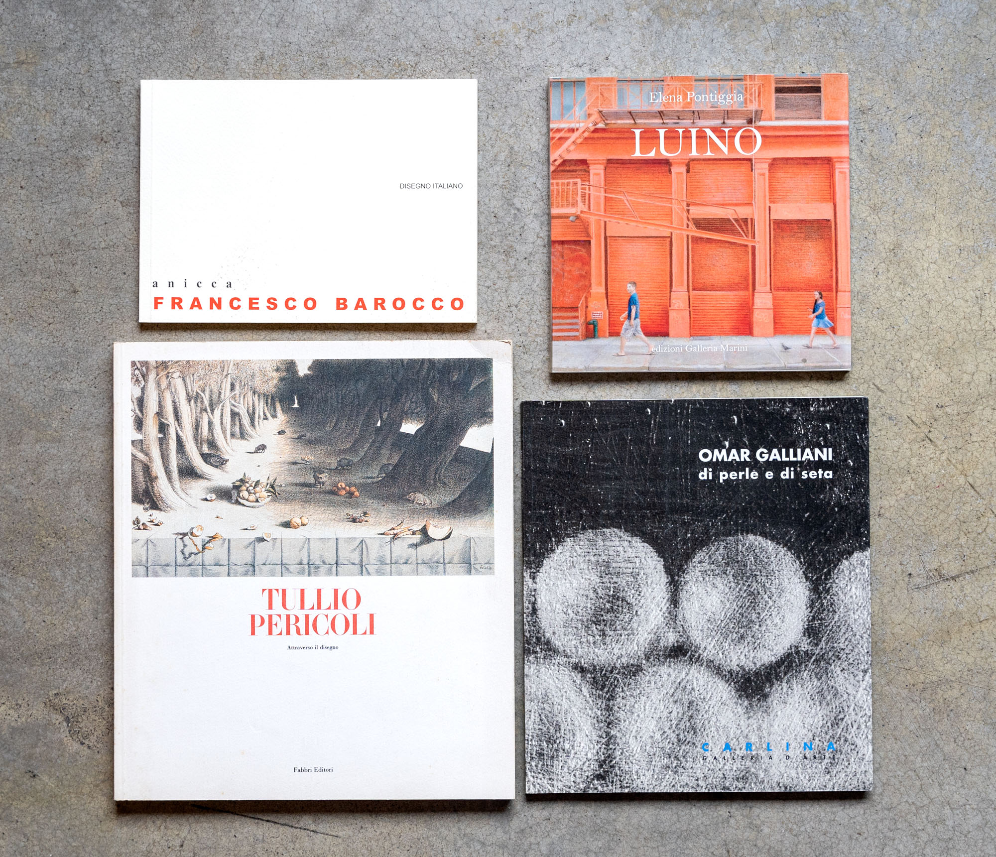 LOTTO MULTIPLOLotto di quattro cataloghiTullio Pericoli - Attraverso il disegno1991Catalogo illustrato edito in occasione della mostra tenutasi presso Palazzo reale, Milano28 x 24,5 cmFabbri EditoriDifettiOmar Galliani - Di perle e di seta2004Catalogo illustrato edito in occasione della mostra tenutasi presso la Carlina Galleria d'Arte, Torino (5 marzo - 17 aprile 2004)24 x 21 cmEdizione della galleriaSenza difettiBernardino Luino - Luino2012Catalogo illustrato edito in occasione della mostra tenutasi presso la Galleria Marini, Milano (15 novembre - 31 dicembre 2012), es. 434/50018 x 18 cmEdizione della galleriaSenza difettiFrancesco Barocco - Disegno italiano2004Catalogo illustrato Edizione Galleria 41 artecontemporaneaSenza difetti