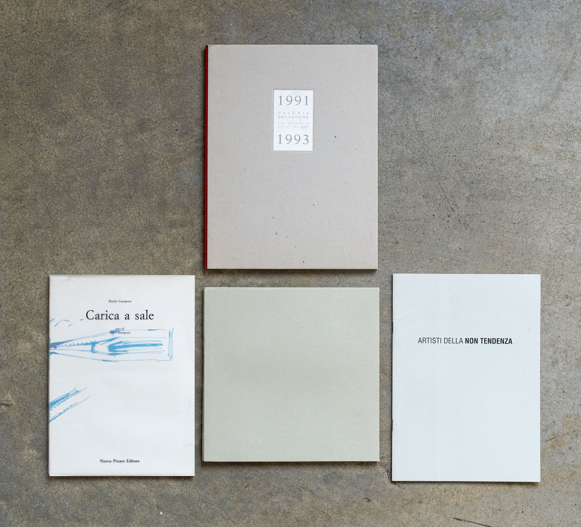 LOTTO MULTIPLOLotto di quattro cataloghiArte come evocazione1990Catalogo illustrato edito in occasione delle mostre tenutesi presso il Teatro Out Off, Milano, e presso Palazzo So.Ge.Mi. - Mercati Generali, Milano20 x 20 cmEdito da Officine Grafiche CanessaSenza difettiManlio Caropreso - Carica a sale1989Catalogo illustrato23 x 17 cmNuova Prearo EditoreSenza difettiValeri Belvedere 1991 - 19931993Catalogo illustrato26 x 20 cmSenza difettiArtisti della non tendnezaCatalogo illustrato 24 x 17 cmSenza difetti
