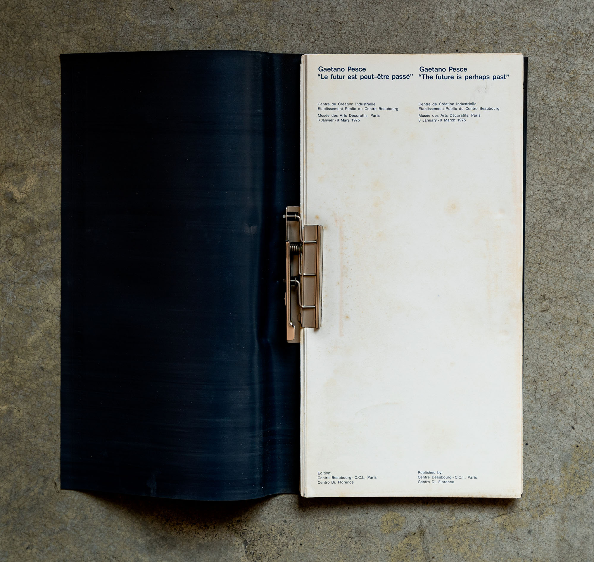 GAETANO PESCE(1939)The future is perhaps past1975Catalogo monografico illustrato33 x 18 cmEdizione Centre BeauibourgDifetti