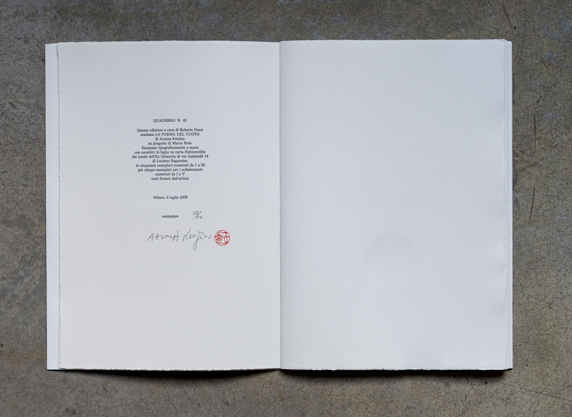 KENGIRO AZUMA(1926 - 2016)La forza del vuoto2008Libro d'artista entro...