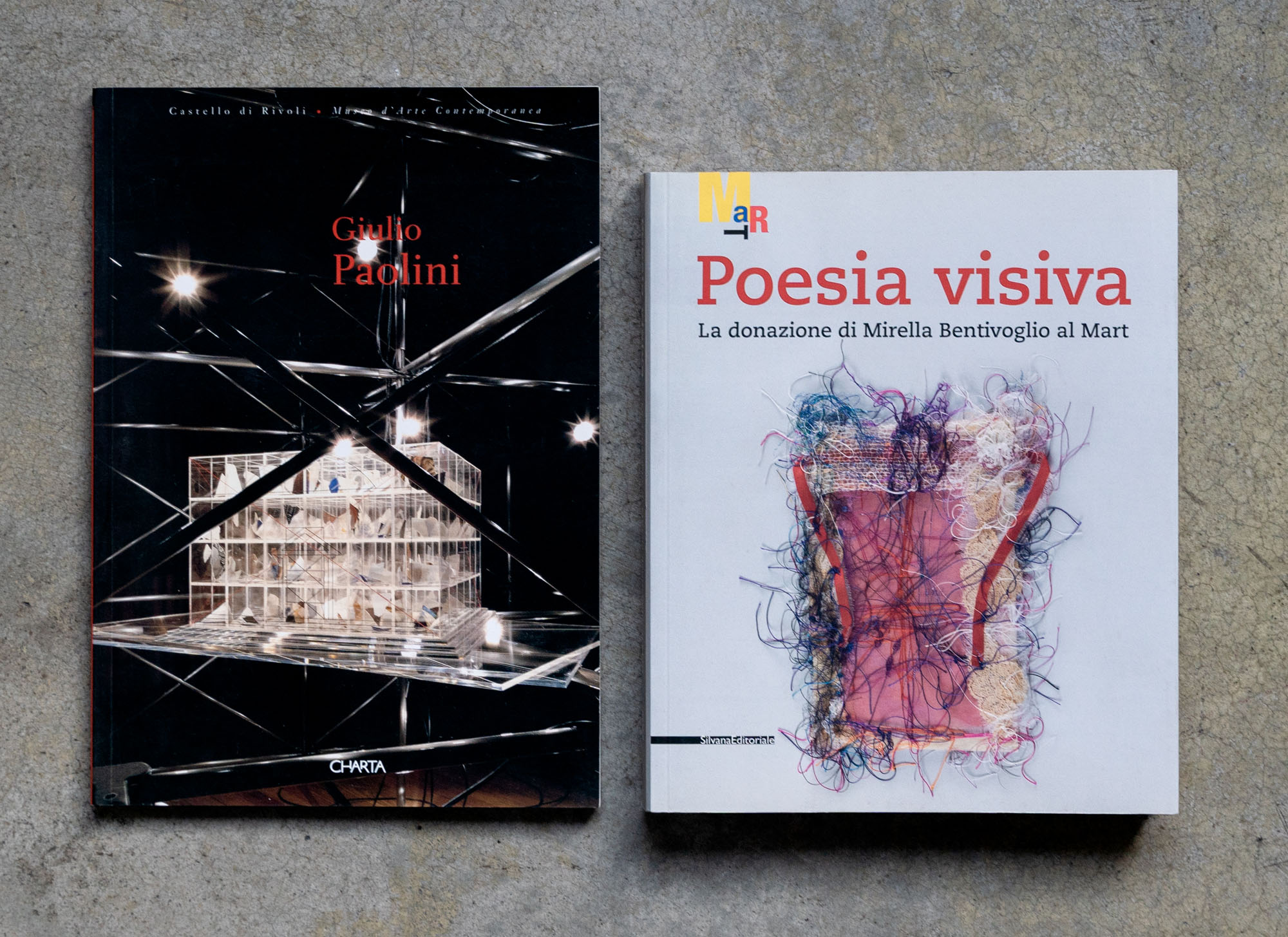 LOTTO MULTIPLOLotto di due cataloghiGiulio Paolini - Padiglione dell'Aurora1999Libro d'artista che racconta l'installazione Aurora Pavillion24 x 17 cmEdizione ChartaSenza difettiPoesia visiva. La donazione di Mirella Bentivoglio al Mart2011Catalogo illustrato 21 x 17 cmSilvana EditorialeSenza difetti