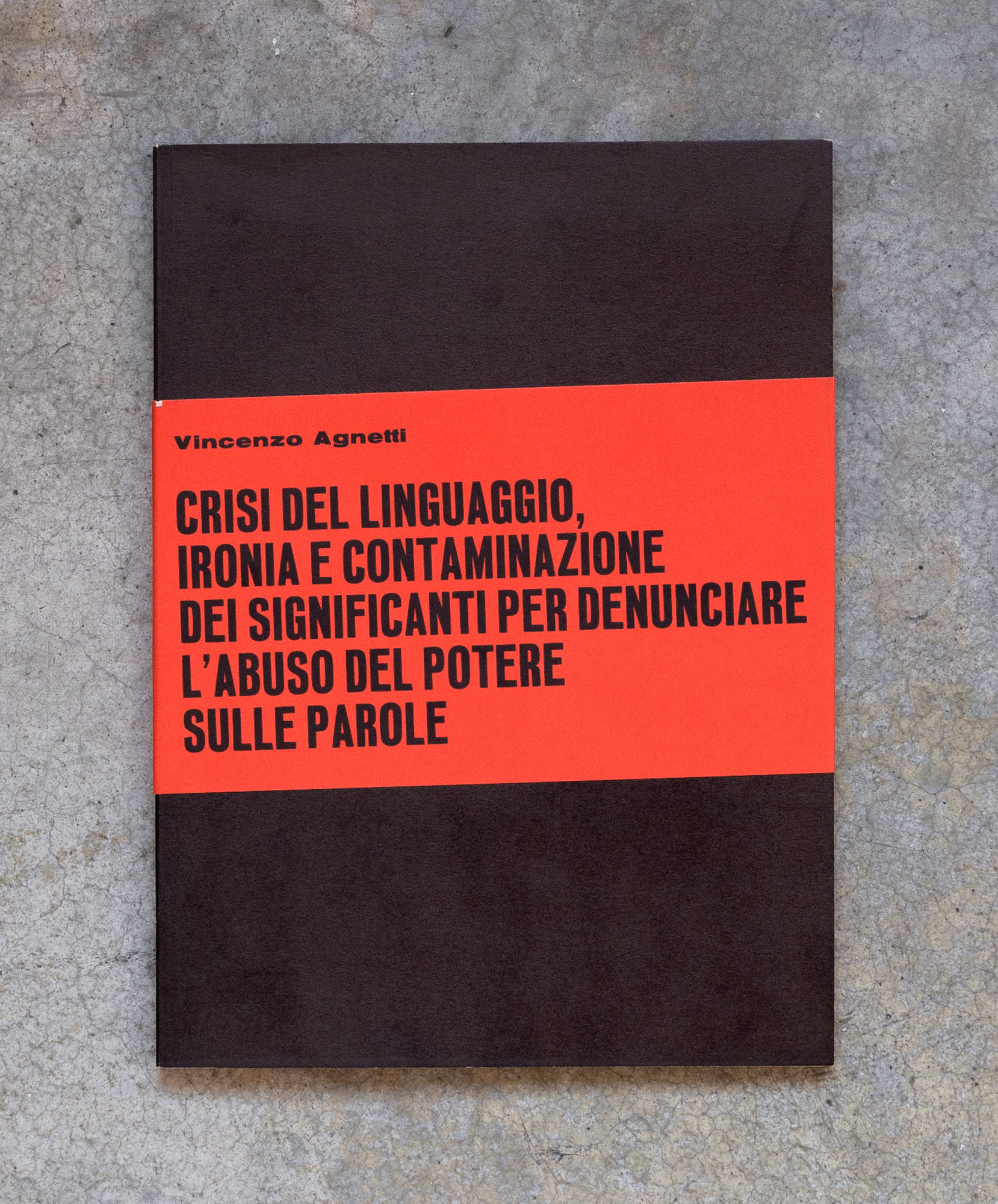 VINCENZO AGNETTI(1926 - 1981)Crisi del linguaggio, ironia e contaminazione dei significanti per denunciare l'abuso del potere sulle parole1972Libro d'artista realizzato in 2000 esemplari23 x 17 cmGiampaolo Prearo EditoreSenza difetti