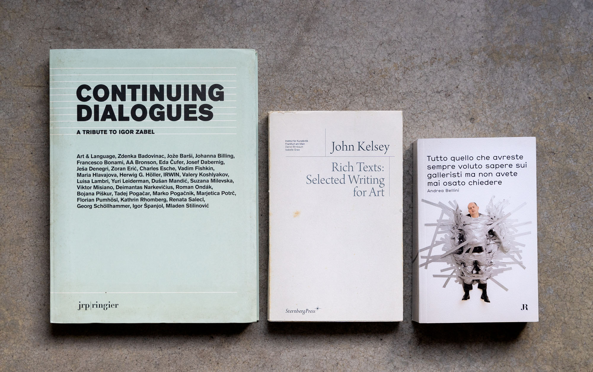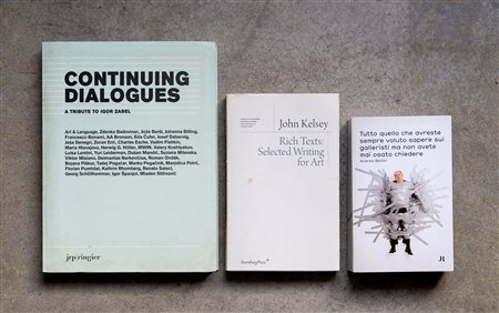 LOTTO MULTIPLOLotto di tre cataloghiContinuing dialogues. A tribute to Igor Zabel2000Catalogo illustrato25 x 19 cmEdizione JRP|RingierDifettiJohn Kelsey - Rich texts: selected writing for art2010Libro19 x 12 cmEdizione Sternberg PressDifettiTutto quello che avreste sempre voluto sapere sui galleristi ma non avete mai osato chiedere2009Libro16,5 x 10,5 cmEdizione Sternberg PressSenza difetti