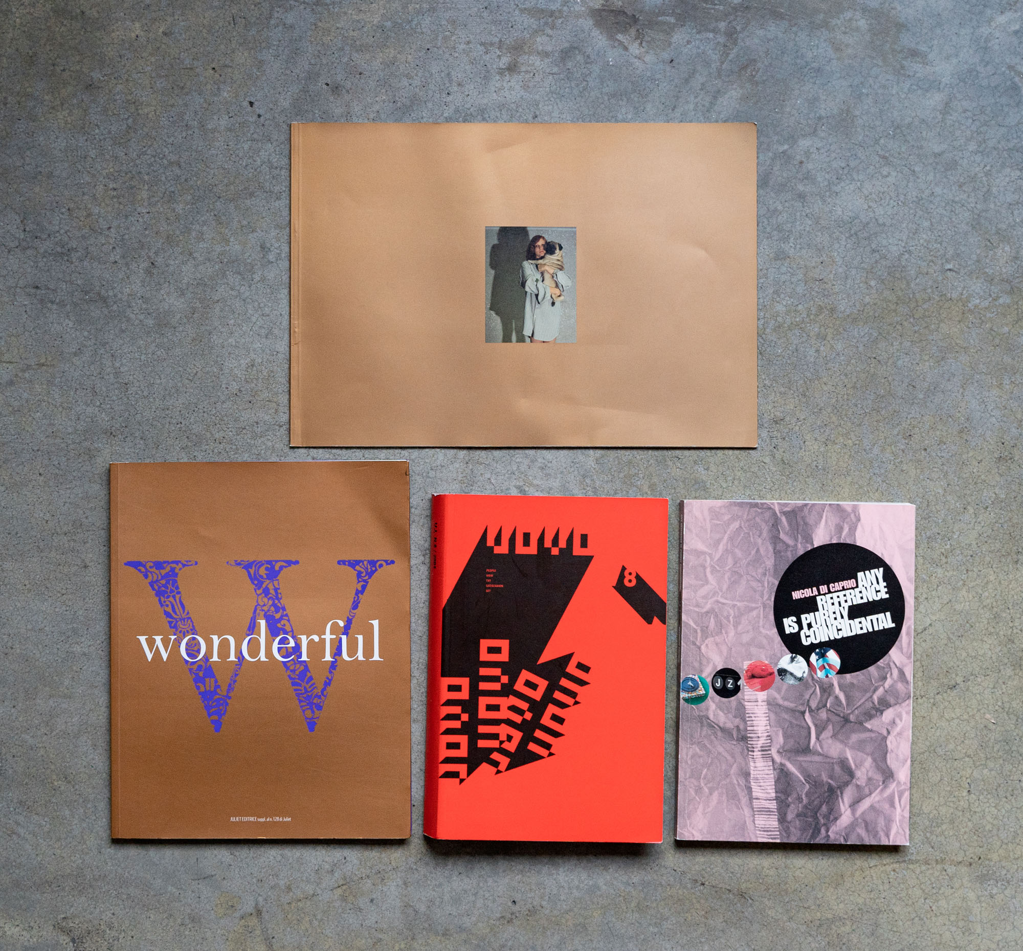 LOTTO MULTIPLOLotto di quattro cataloghiNicola Di Caprio - Any reference is purely coincidental2006Catalogo illustrato24 x 16,5 cmArtshow EdizioniDifettiWonderful2006Catalogo illustrato26,5 x 21 cmJuliet Editrice DifettiWall Flowers2000Catalogo illustrato edito in occasione della mostra tenutasi presso Herzliya Museum of Art, Israele 23 x 33 cmDifettiPeople view txt satisfahion set n.82004Catalogo illustrato24 x 15,5 cmDifetti