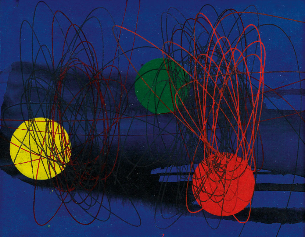 olio su tela cm. 35x45, firma e anno al retro, dichiarazione d'autenticità di Roberto Crippa Jr. e Archivio Roberto Crippa n° 513, Catalogo Generale delle Opere a cura della Galleria Pace (MI) su foto.