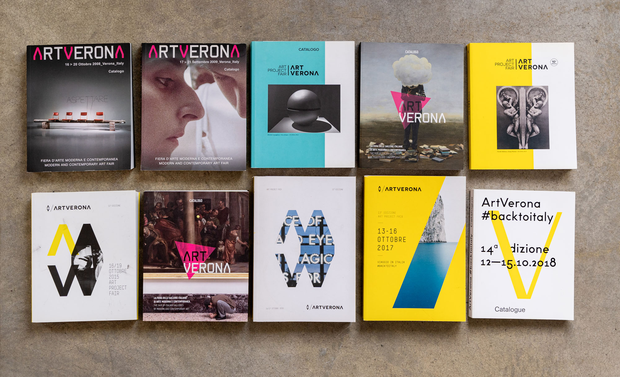 AUTORI VARILotto di dieci cataloghi realizzati in occasione della fiera d'arte Art VeronaAnni diversiCataloghi illustratiOtto cataloghi misurano 21 x 17 cmDue cataloghi misurano 23,5 x 16,5 cmDifetti