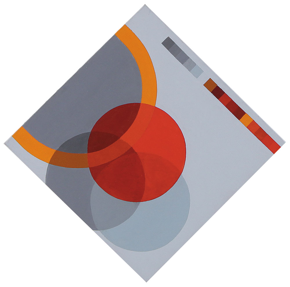 olio su tela in romboidale cm. 42,5x42,5 (lato cm. 30), firma, titolo e anno al retro.