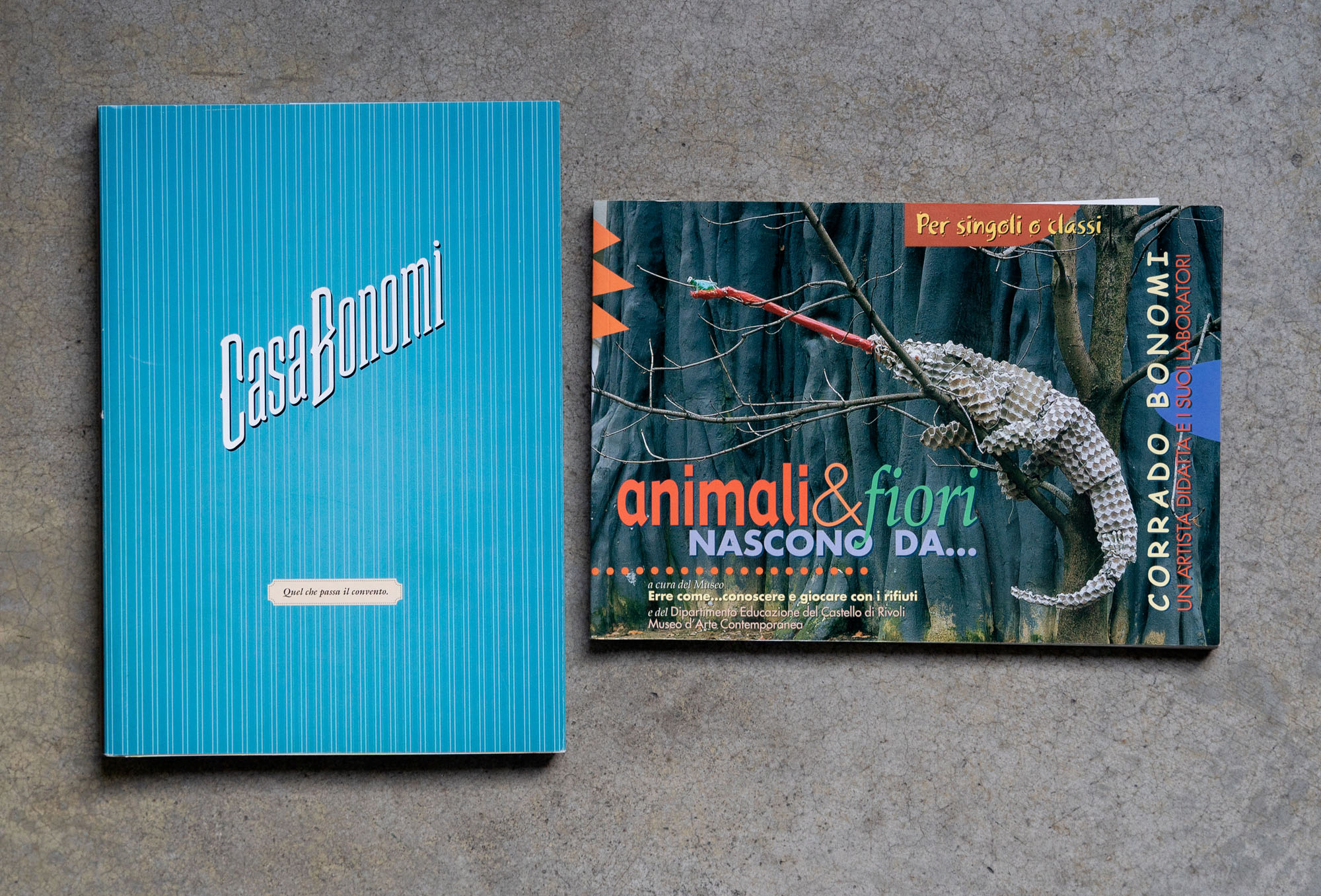 CORRADO BONOMI(1956)Lotto di due cataloghiCasa Bonomi. Quel che passa il convento2009Catalogo illustrato24 x 17 cmEdizione MG ArtDifettiAnimali & fiori nascono da...Catalogo illustrato16,5 x 23 cmSenza difetti