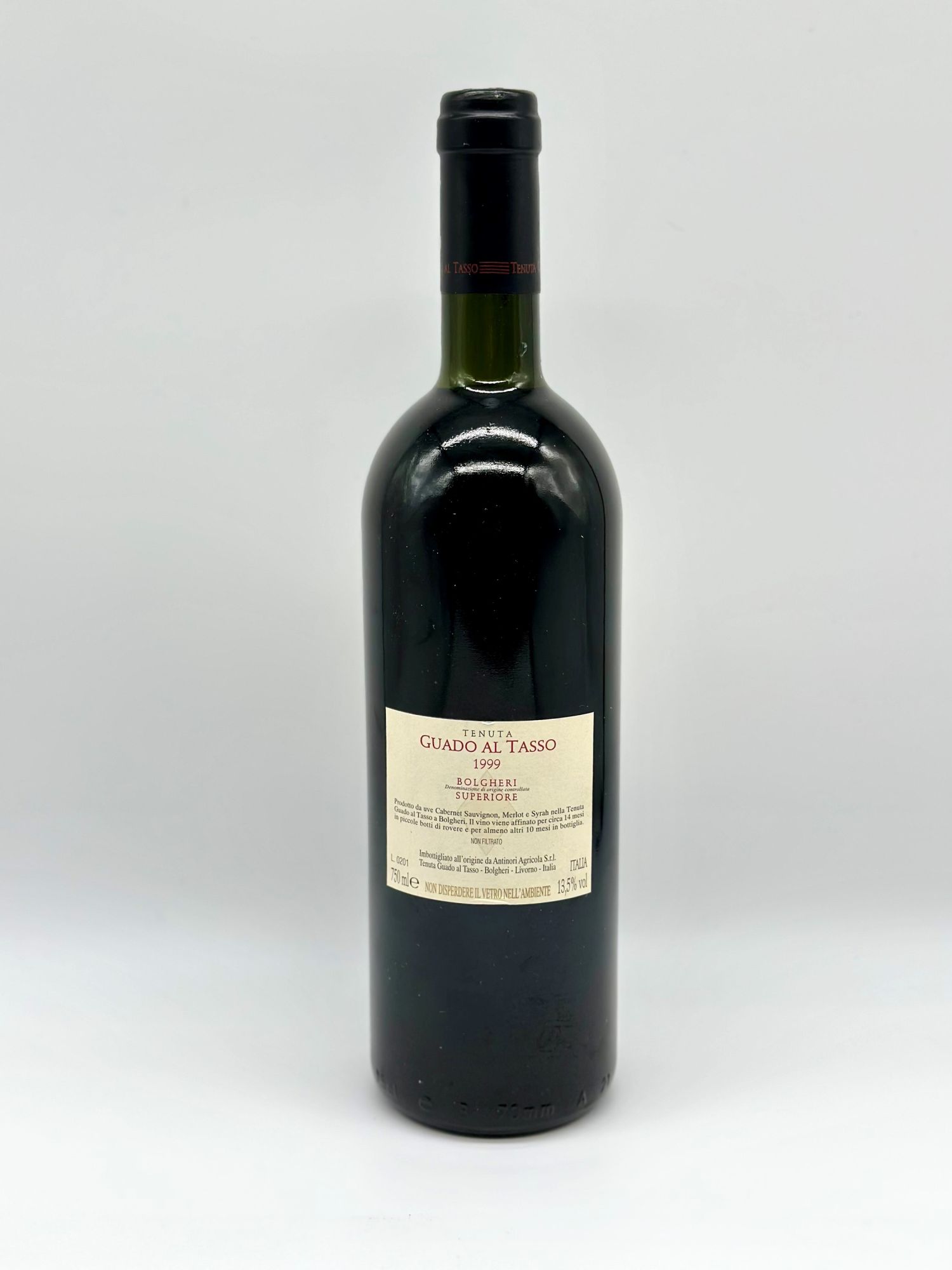 0,75 Toscana, Bolgheri Superiore DOC - 1 bottiglia (bt), annata 1999. Livello: sommità della spalla (TS), livello normale per i vini di oltre 15 anni d'età. Condition report: etichetta leggermente danneggiata e capsula in perfette condizioni.