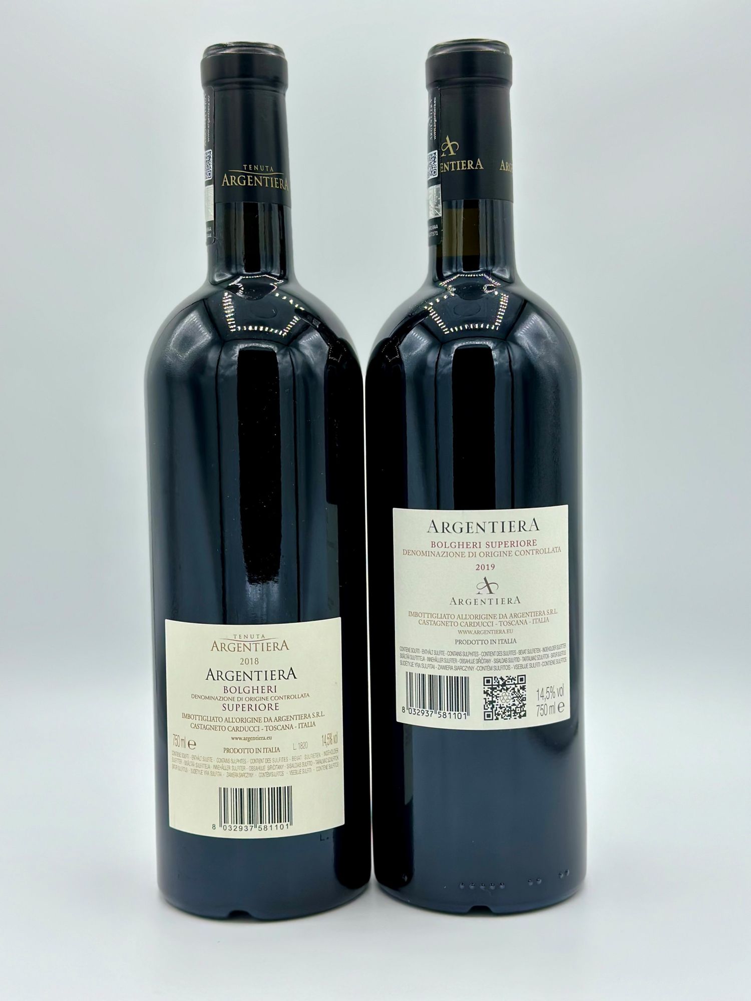 Italia-Toscana 0,75 Toscana, Argentiera, Bolgheri Superiore DOC - 2 bottiglie (bt), annata 2018. Livello: collo inferiore (BN). Condition report: etichetta e capsula in perfette condizioni.