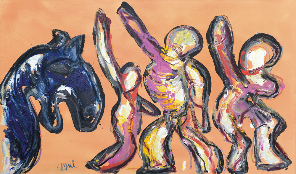 acrilici su carta cm. 88x148, firma in basso a destra, opera registrata presso l'Archivio Karel Appel come da certificato della Karel Appel Foundation allegato.