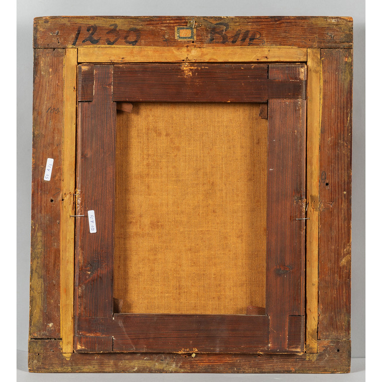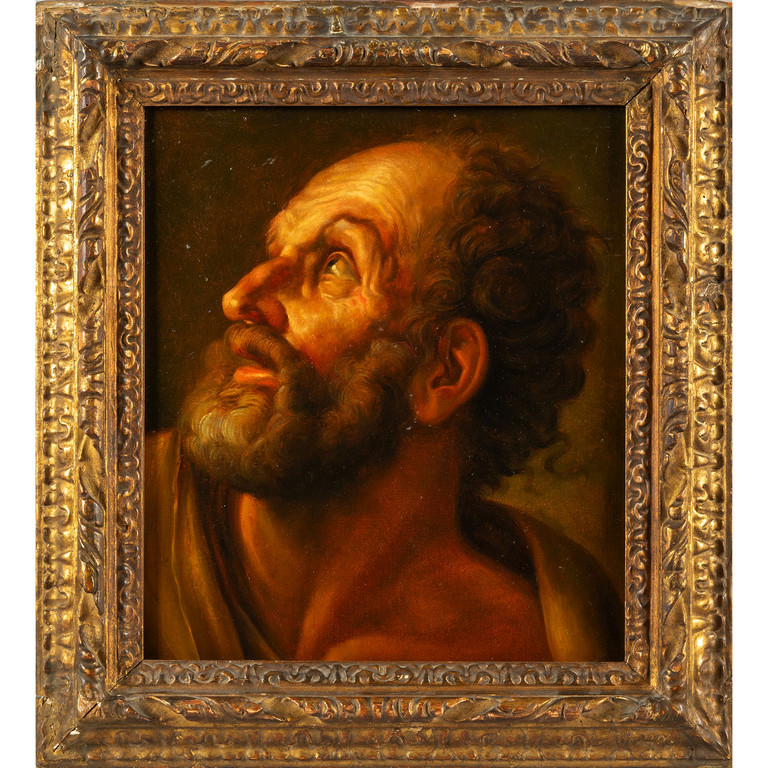 Scuola emiliana sec.XVIII 'Volto virile' olio cornice in legno intagliato e dorato