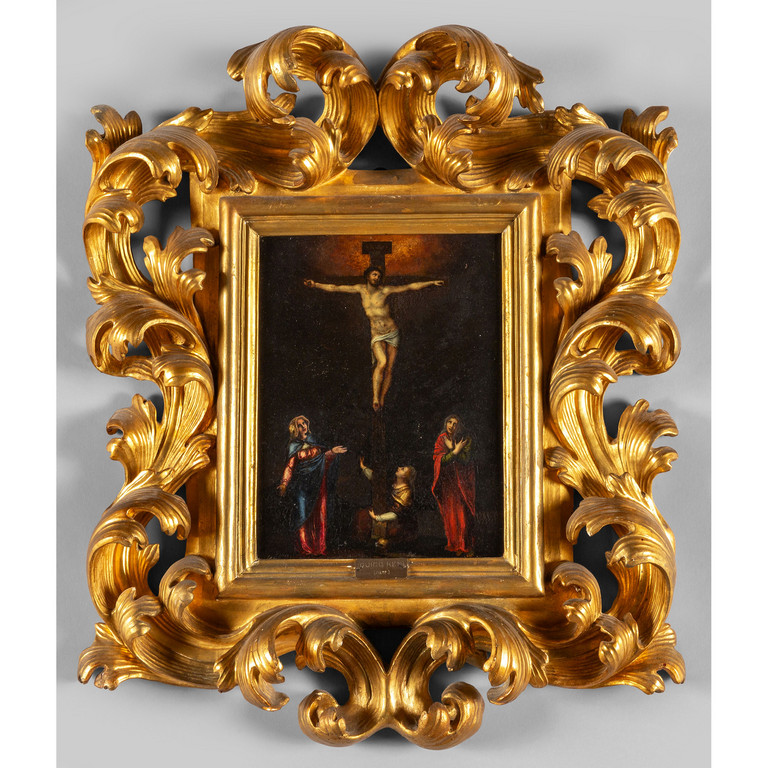 'Cristo e le Pie Donne' olio su rame sec.XVII splendida cornice barocca in legno intagliato e dorato antica attribuzione a Guido Reni