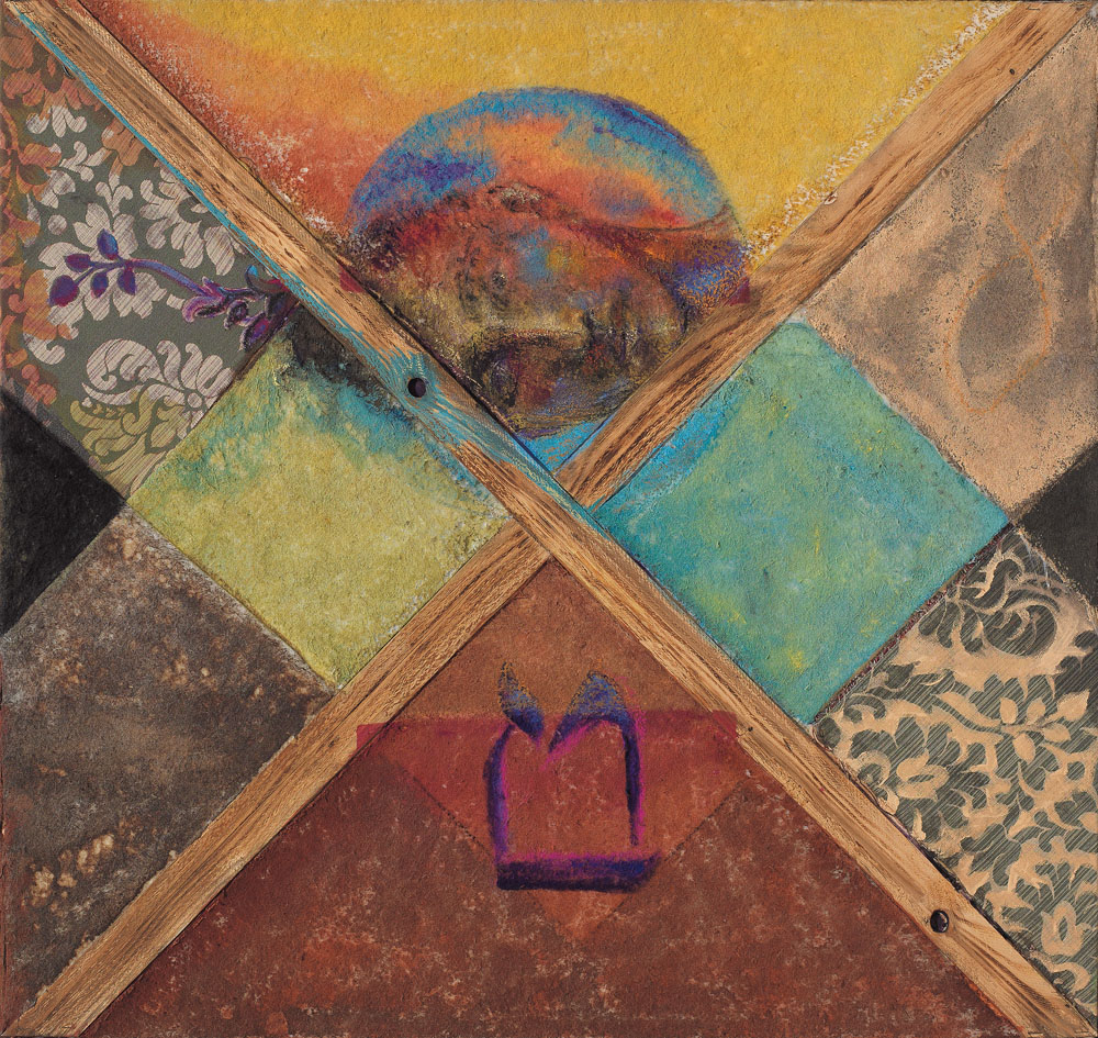 tecnica mista e collage su tela e tavola cm. 92x87, firma, titolo e anno al retro, dichiarazione d'autenticità e archivio dell'artista su foto.