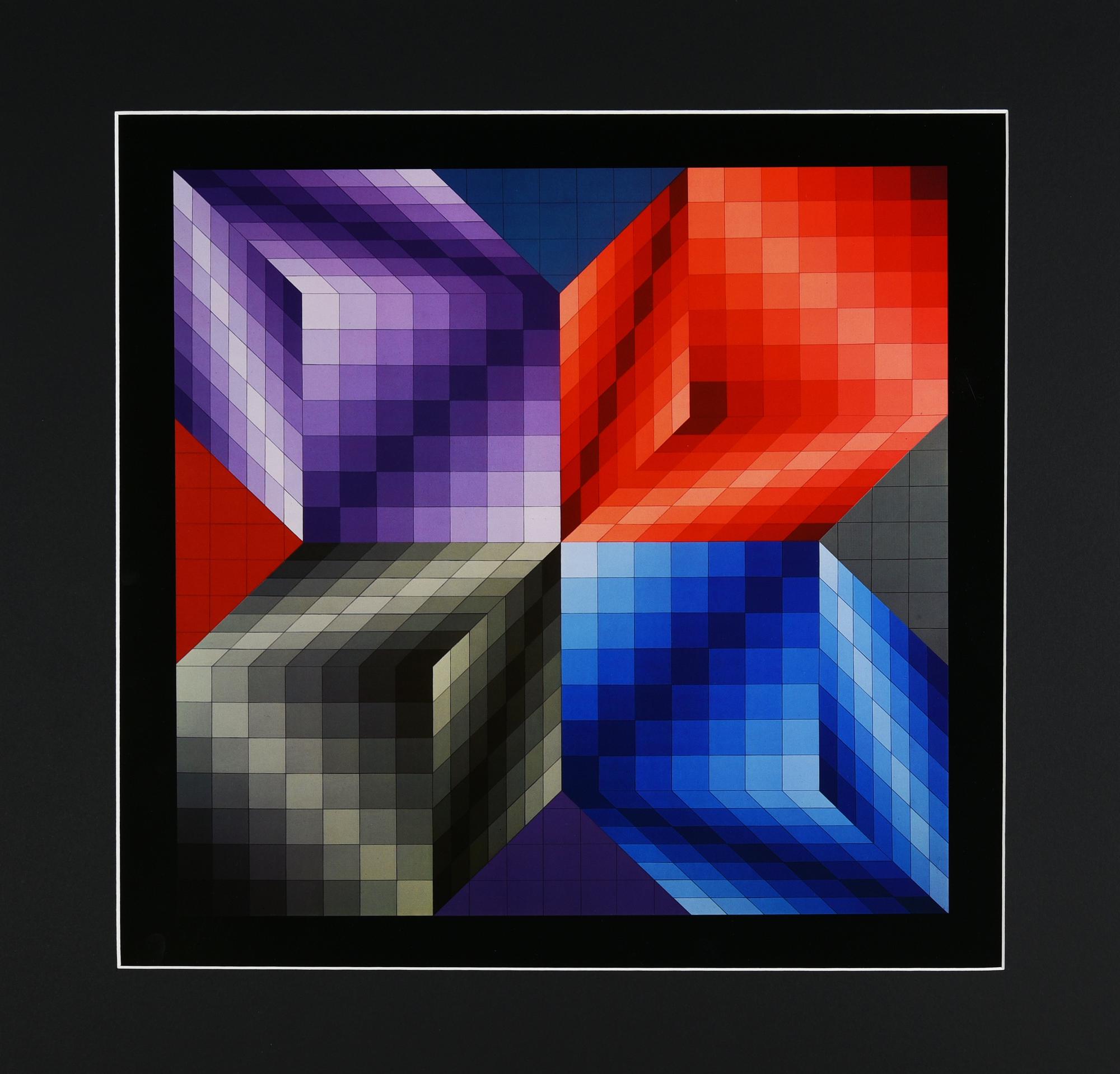 Victor Vasarely KUB-STRI heliogravure su cartoncino, cm 41x41 proveniente...