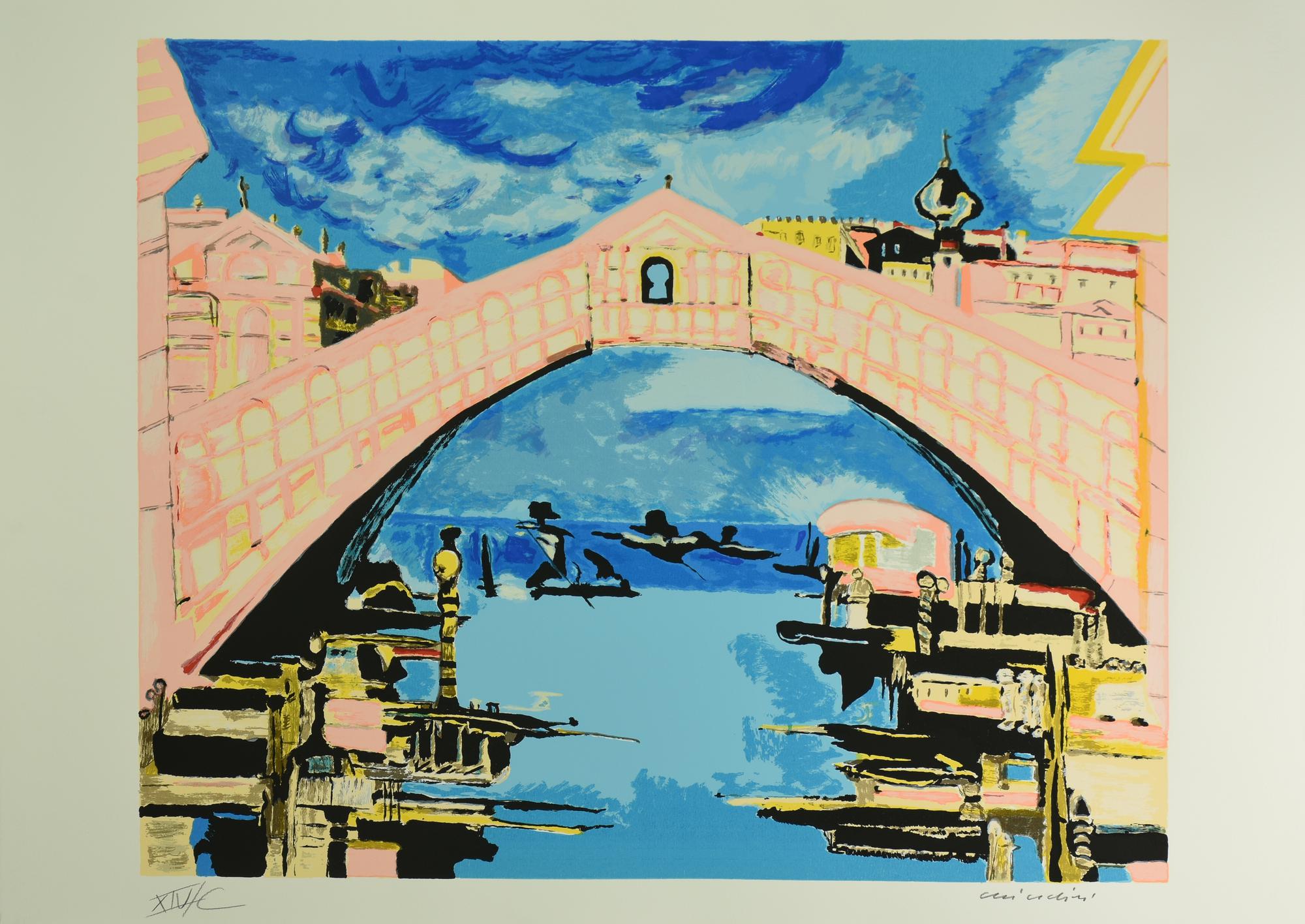Remo Brindisi VENEZIA, PONTE DI RIALTO serigrafia su carta, cm 50x70; es....