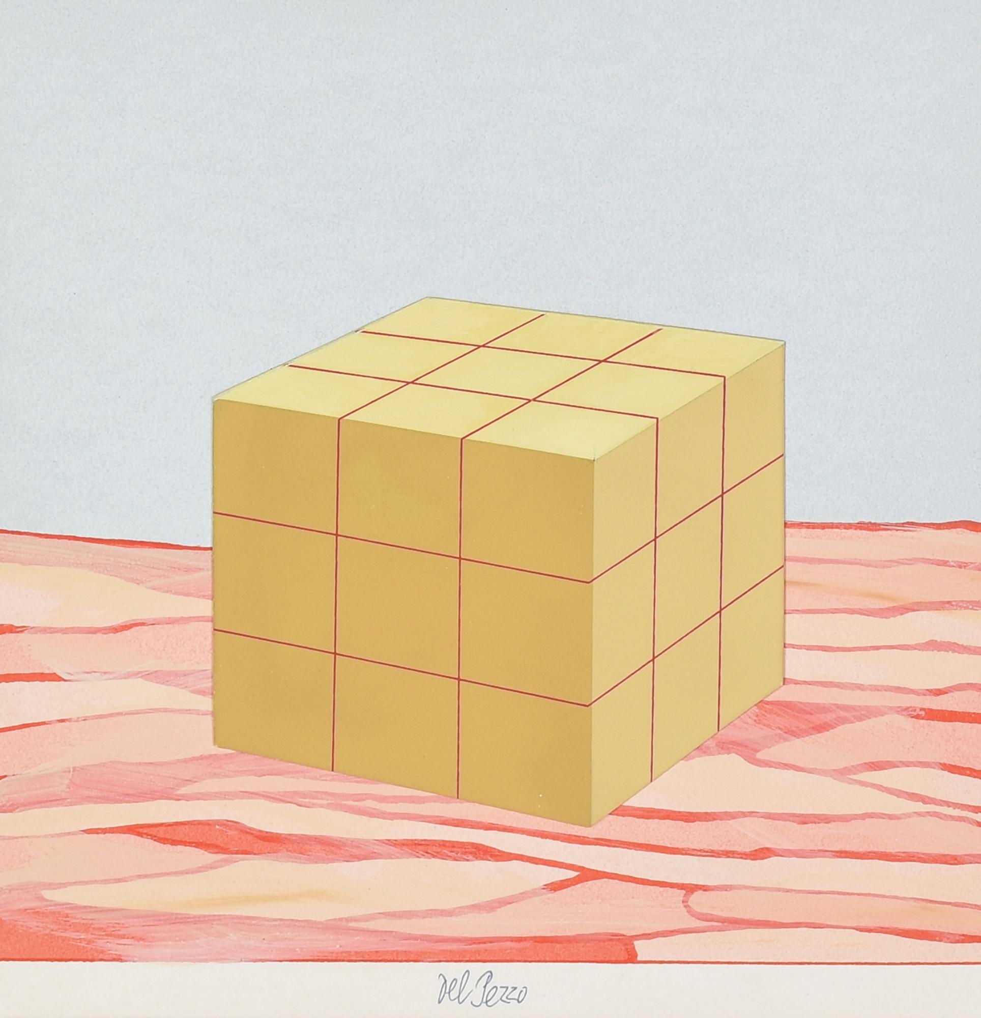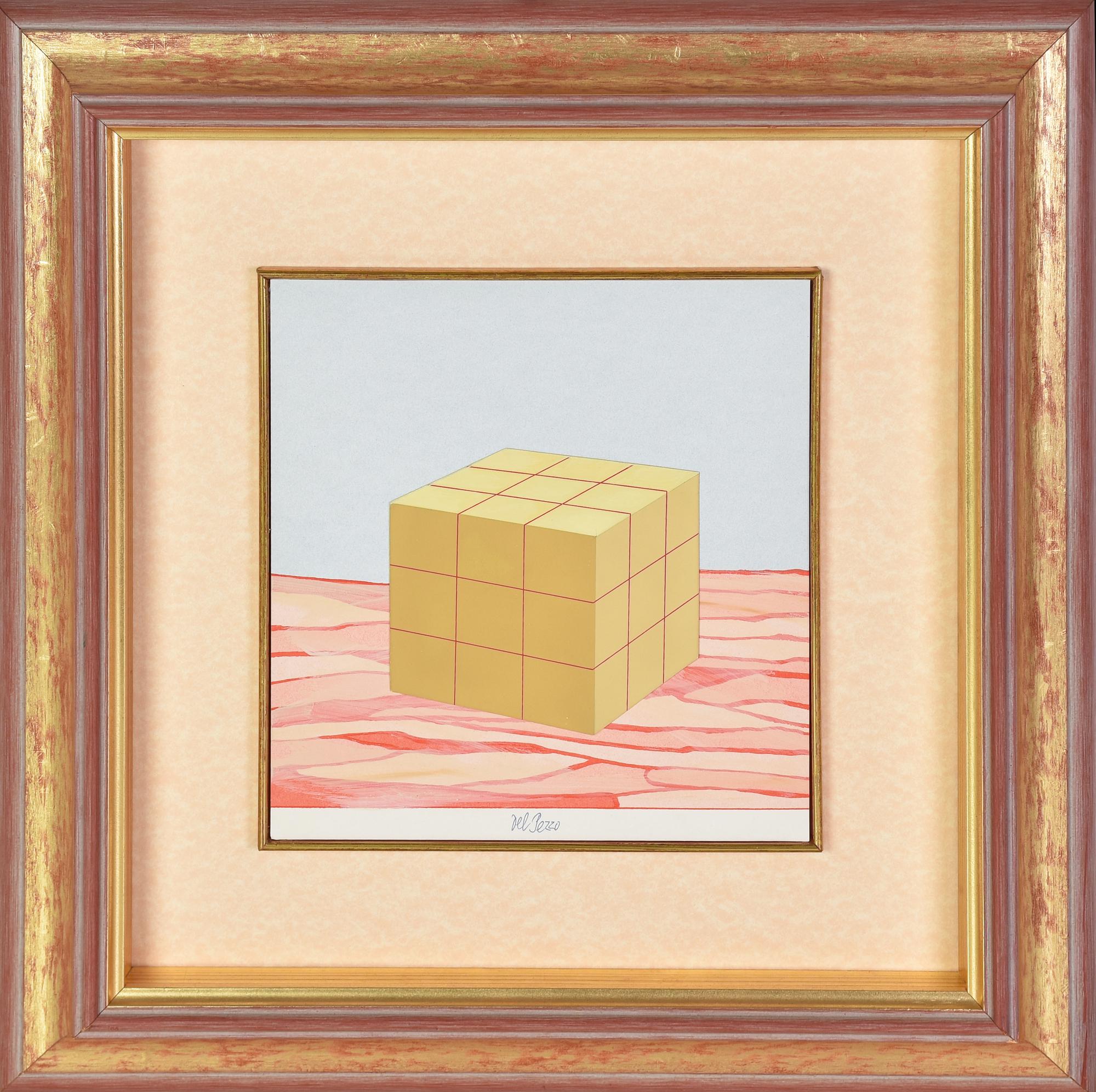 Lucio Del Pezzo IL CUBO tempera e collage su cartoncino, cm 23x21 firma...