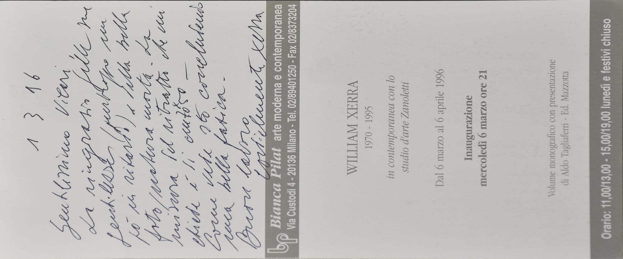 William Xerra INVITO, 1996 pennarello su carta, 10,5x20,5 firma e data sul...