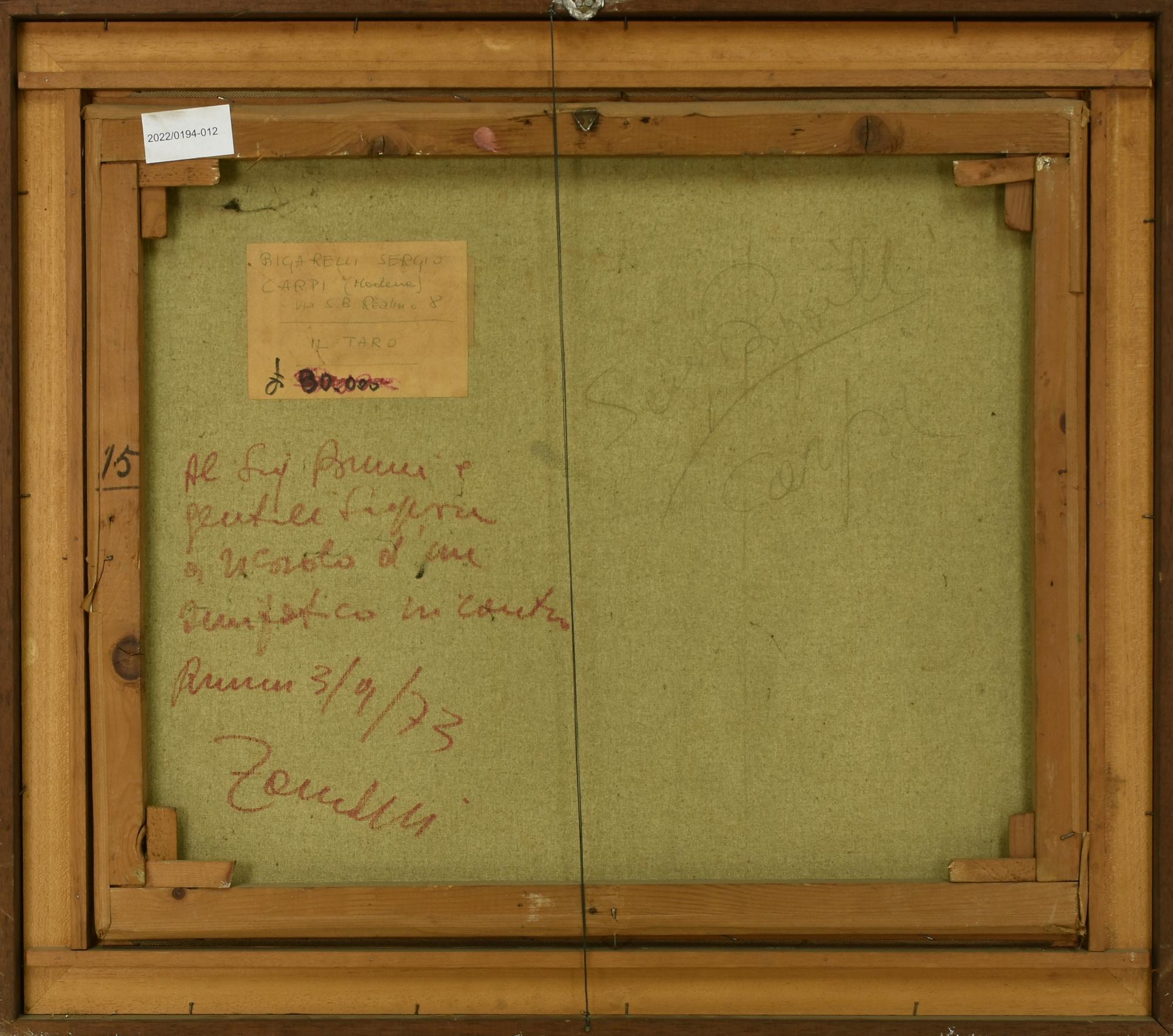 Sergio Bigarelli IL TARO olio su tela, cm 50x60 firma sul retro: firma,...