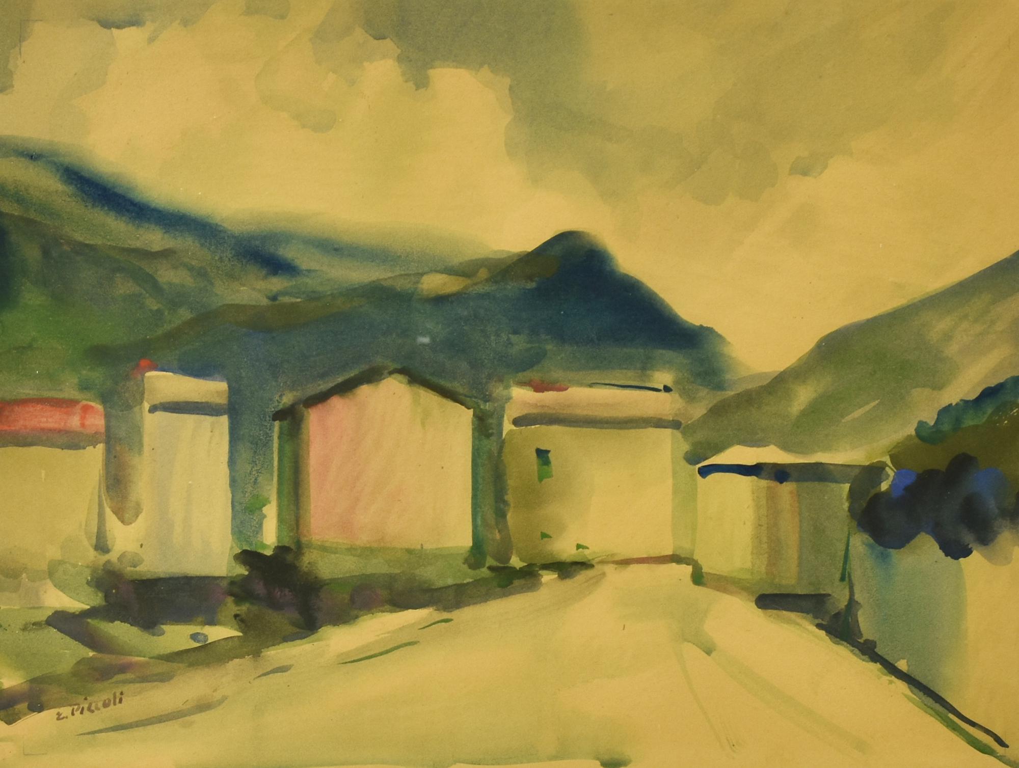 Ernesto Piccoli VEDUTA acquarello su carta, cm 30x40 firma