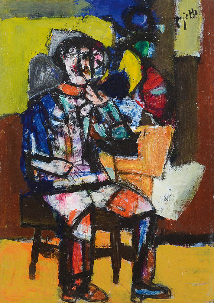 acrilico su cartone telato cm. 70x50, firma in alto a destra, opera registrata presso l'Archivio Guido Pajetta al n° 4343 come da dichiarazione a cura dell'Arch. Giorgio Pajetta su foto.