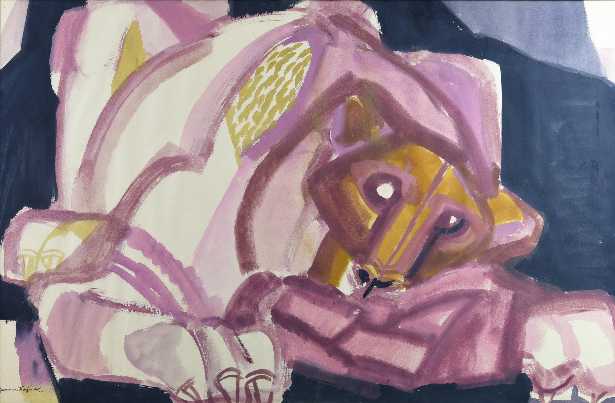 Janos Hajnal PANTERA acquerello su carta, cm 68x102 firma