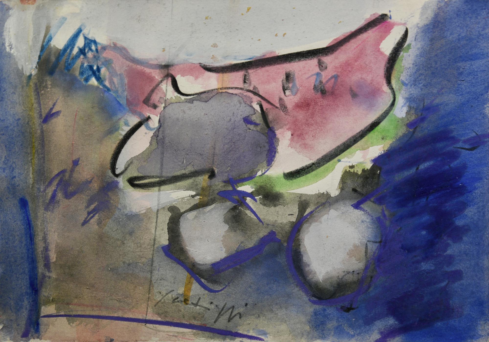 Lotto 399 | Sergio Scatizzi NATURA MORTA CON ANGURIA tecnica mista su carta, cm 22x34