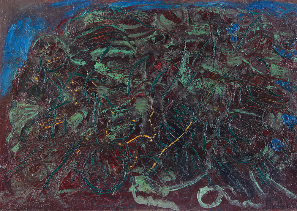 olio su tela cm. 70,5x100, firma e anno in basso a destra, firma, titolo, anno ed etichetta della Galleria delle Ore (MI) al retro.
