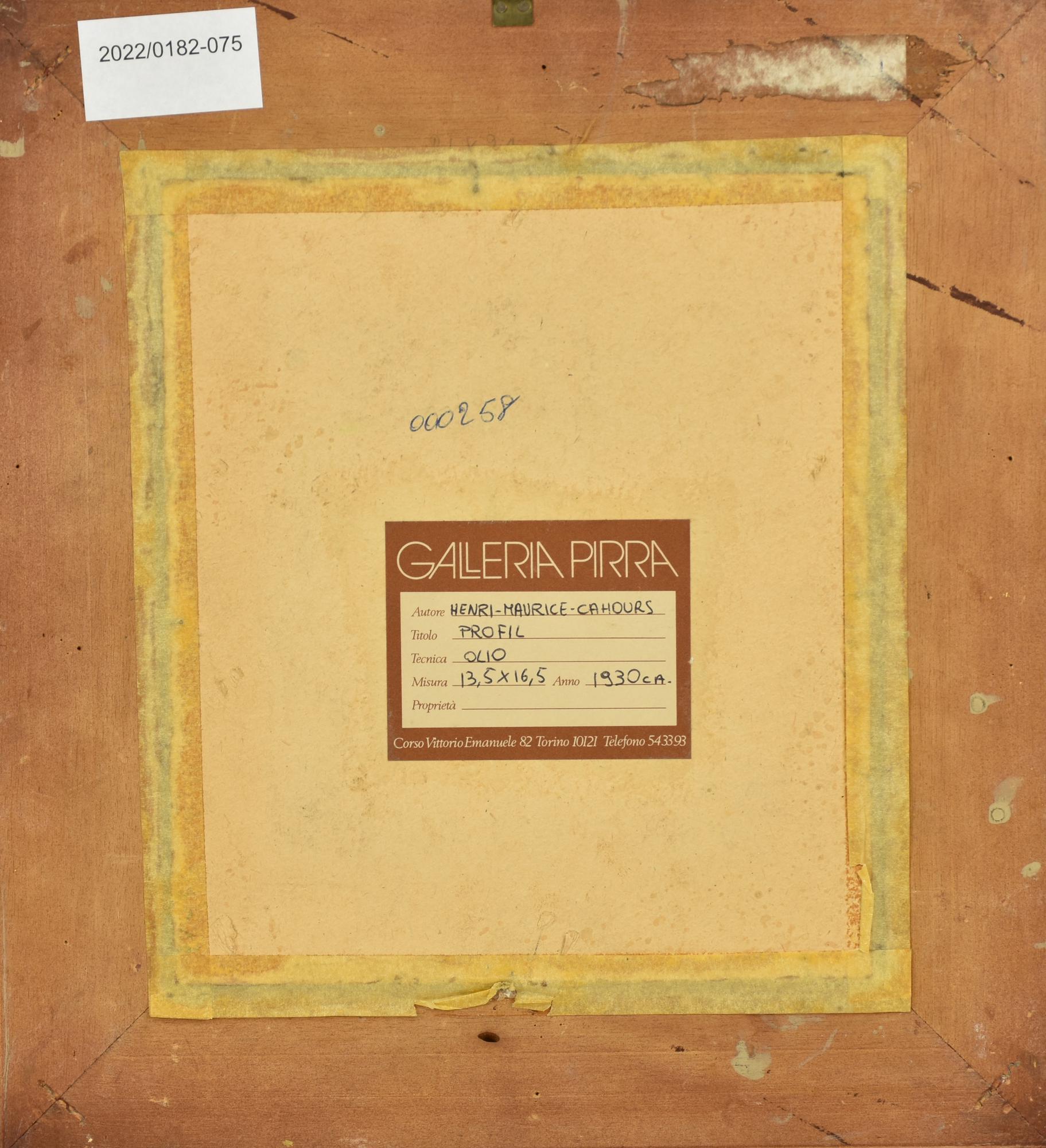 Maurice Henri Cahours PROFIL olio su cartoncino, cm 16,5x13,5 sul retro:...