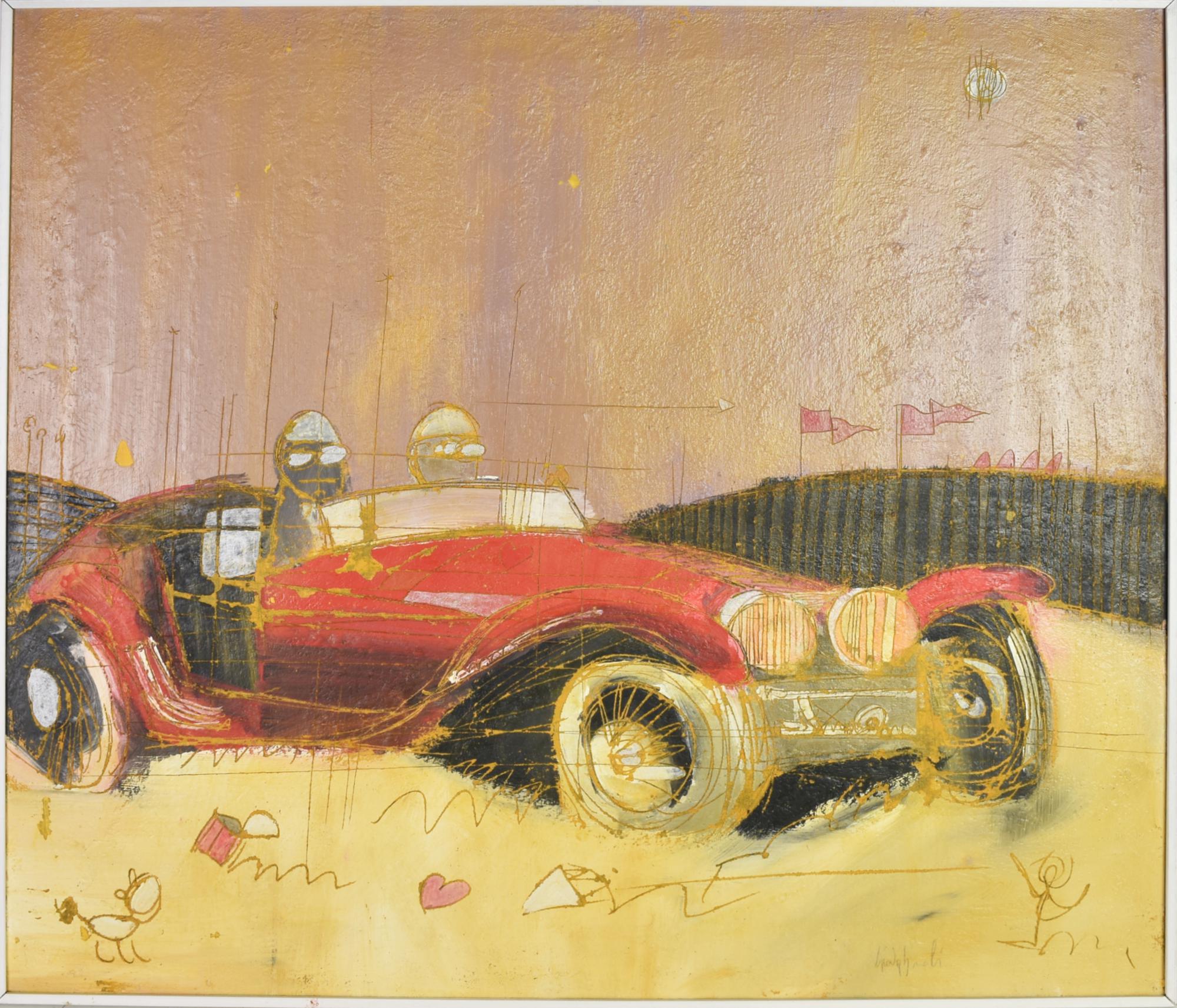 Luca Giovagnoli SOLE SUL PARABREZZA, 1993 tecnica mista su tela, cm 70x80...