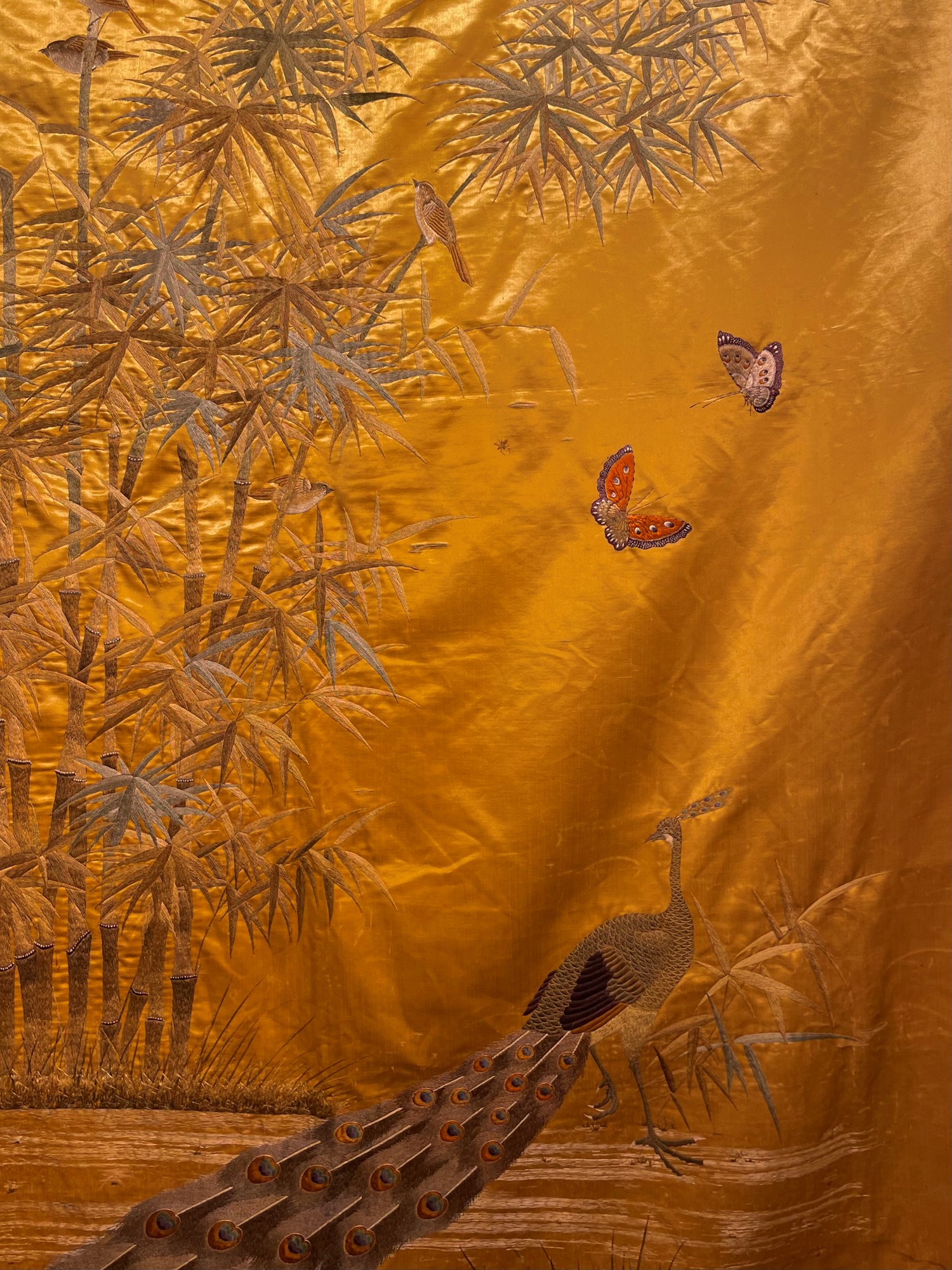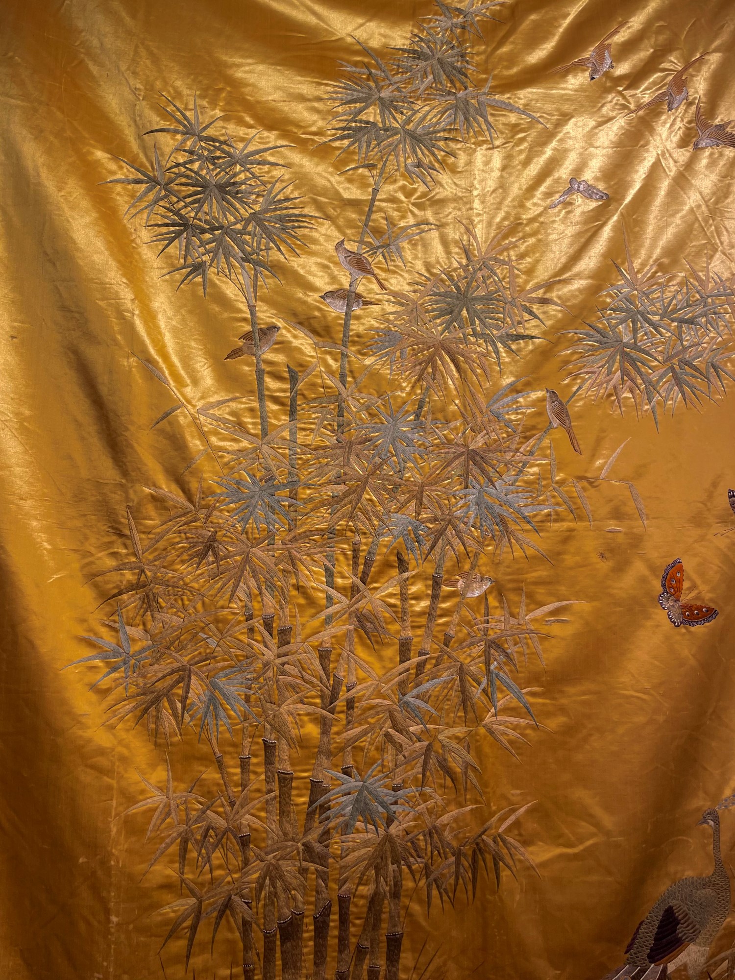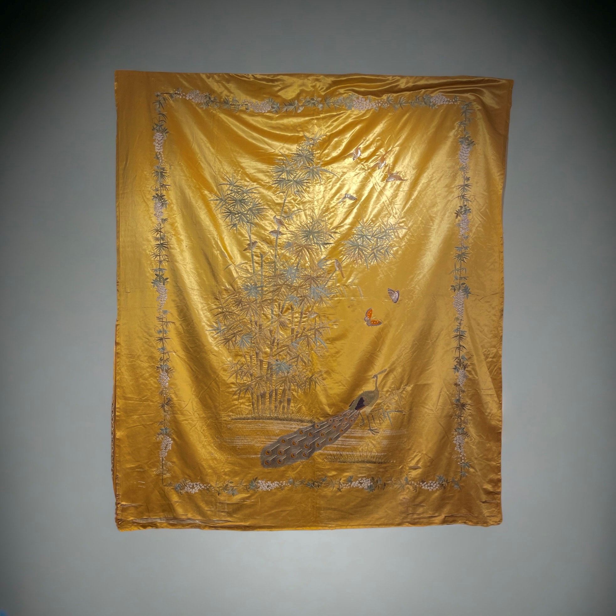 Grande tessuto in seta color giallo oro Manifattura cinese - XIX secolo cm 200 x 170
