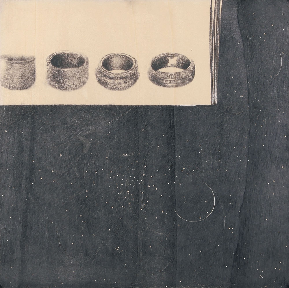 grafite su tavola cm. 50x50, firma e titolo al retro, dichiarazione d'autenticità dell'artista su foto.